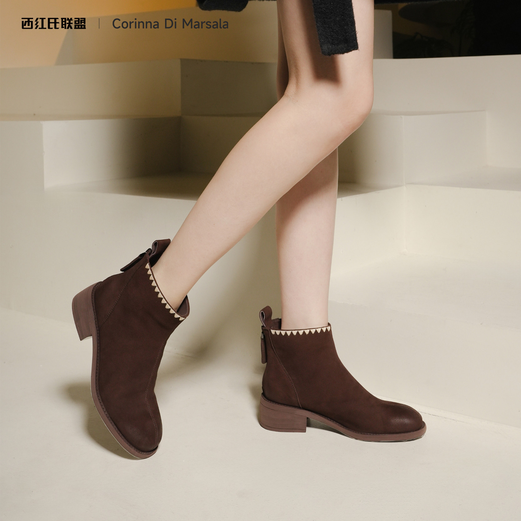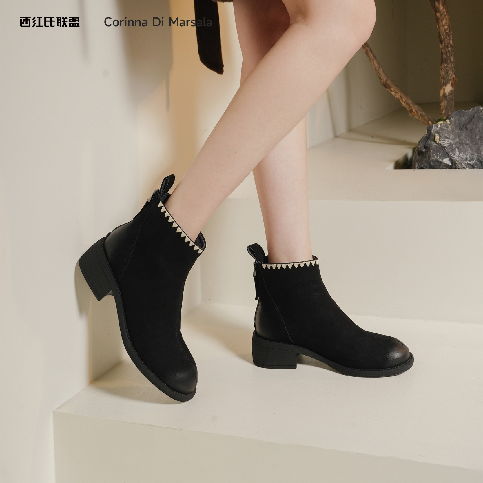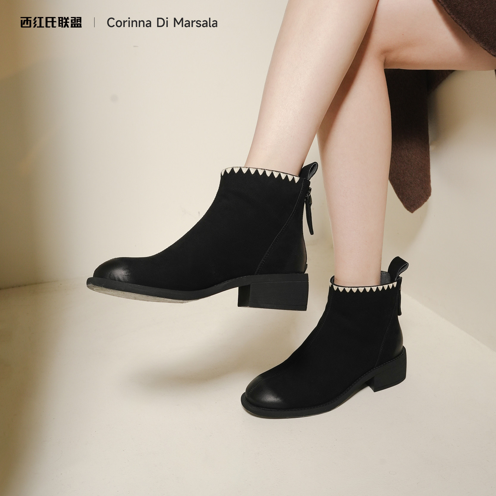 📚 Corinna di Marsala2025新款擦色短靴女粗跟厚底增高复古踝靴女靴