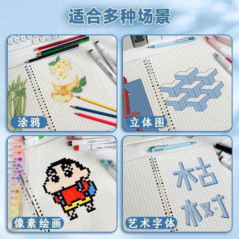📚 像素画活页格子本B5本可拆卸素描本小方格本涂鸦大号A4数学绘图本