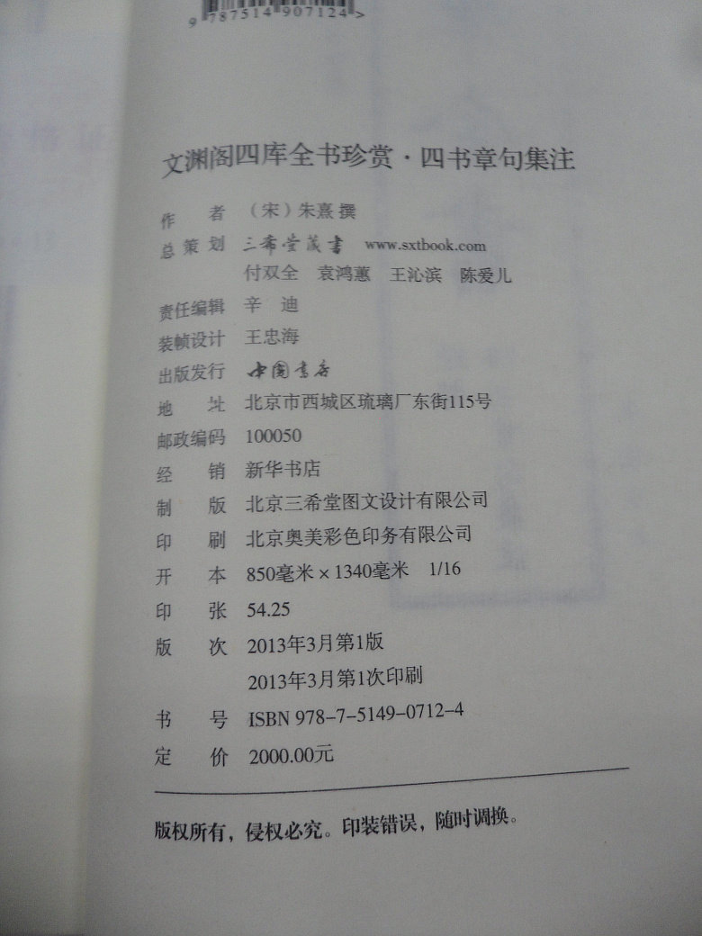 19¥ tG-#22>lD qDqlUL6d9V1¥ https://m.tb.cn/h.7BIBzKJ 全新正版 文渊阁四库全书珍赏.四书章句集注 1函6册 宣纸线装 原大影印本 2000 --------------------- 【原售价】2,000元 【现售价】1,650元。