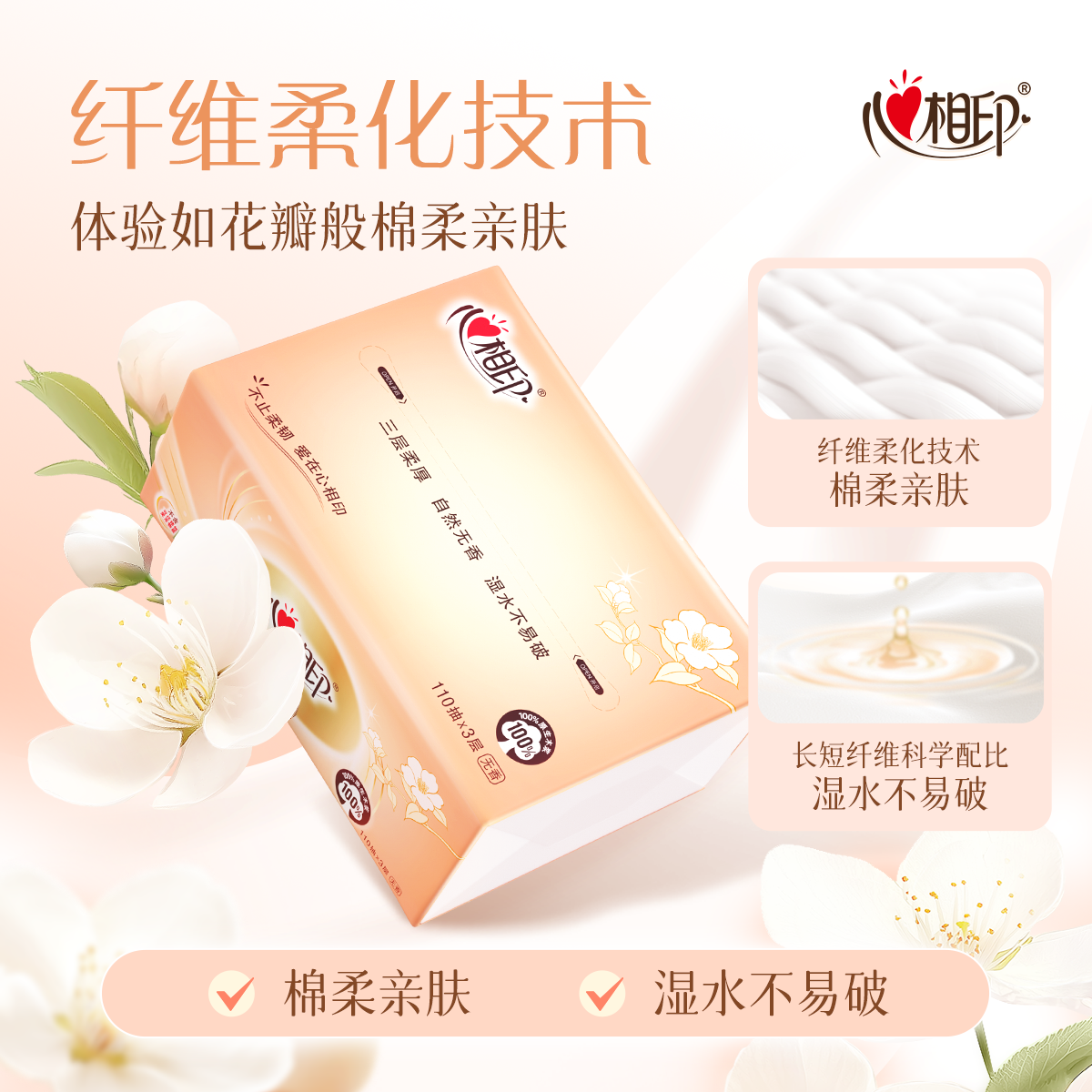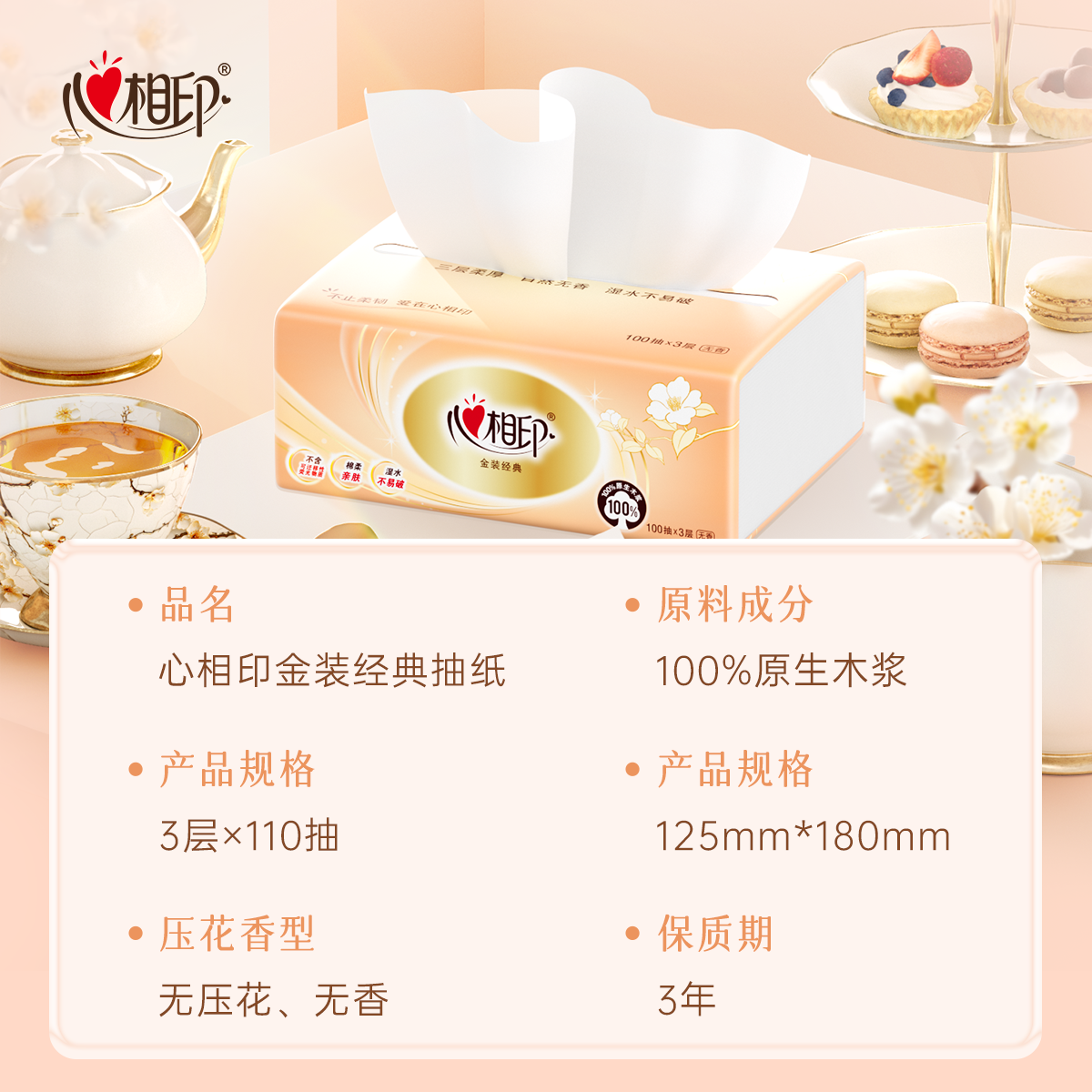 📚 心相印抽纸纸抽金装110抽3层纸面巾餐巾纸家用巾实惠装抽取式经典