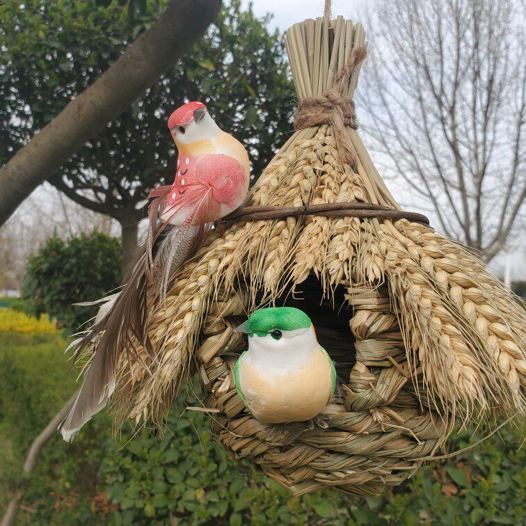 📚 鸟窝鸟巢小鸟用品鸟笼草编户外田园花园庭院仿真装饰品农家乐挂件