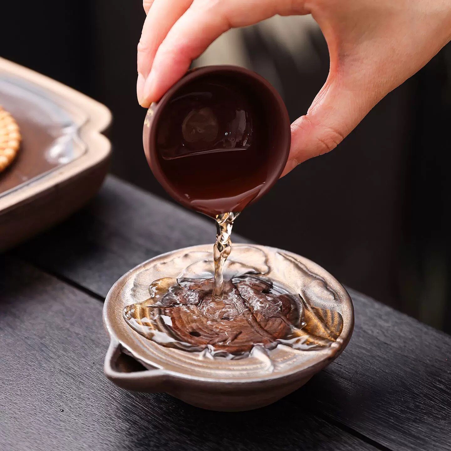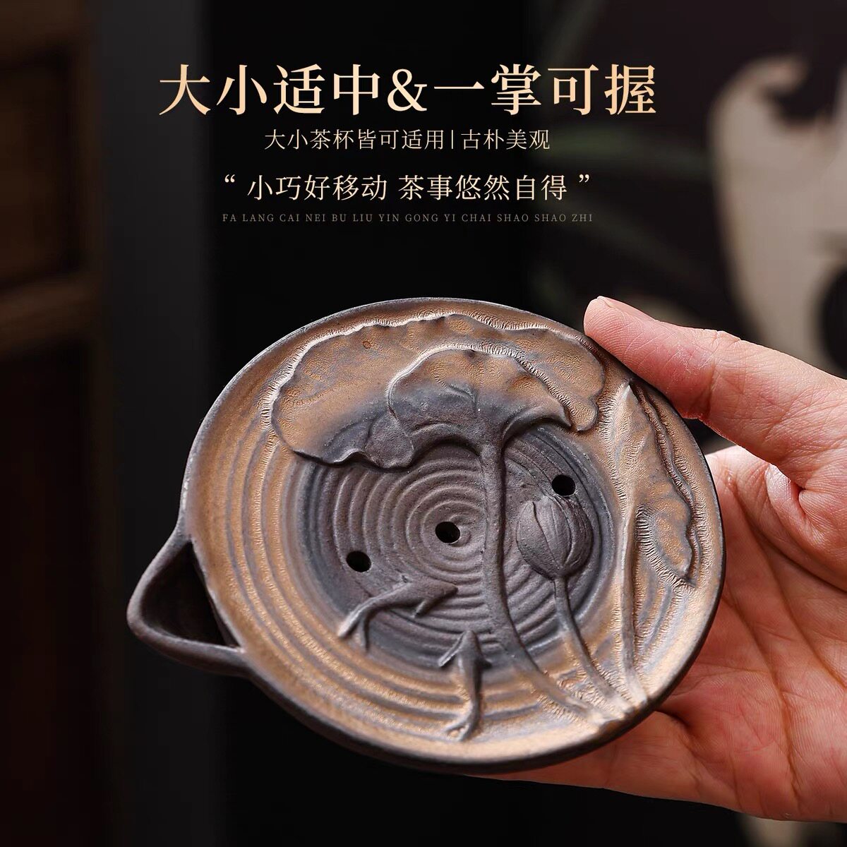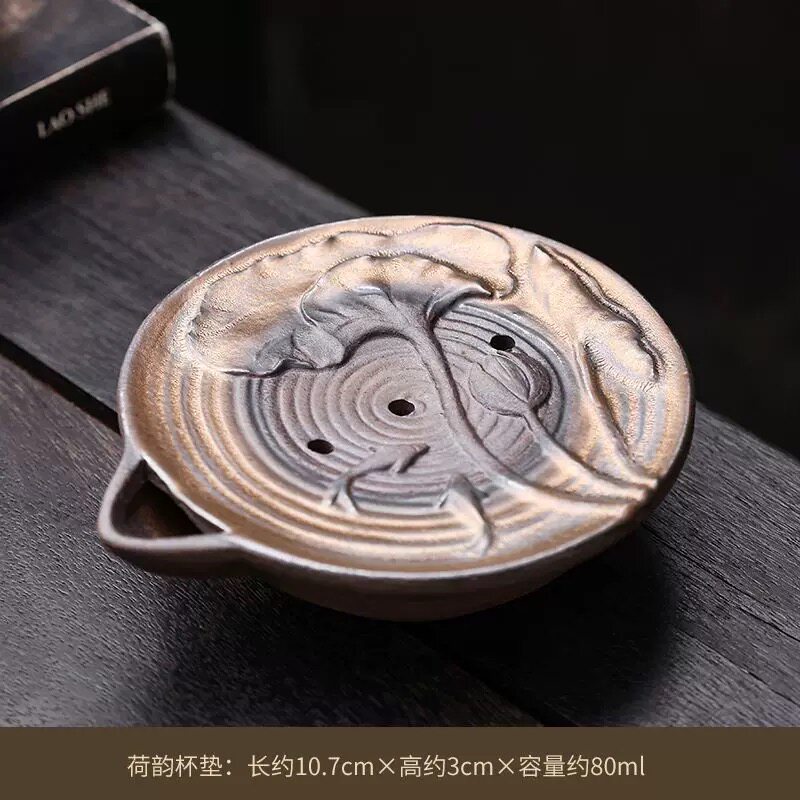 📚 粗陶储水杯垫日式复古隔热垫陶瓷功夫茶杯垫子创意茶道零配件
