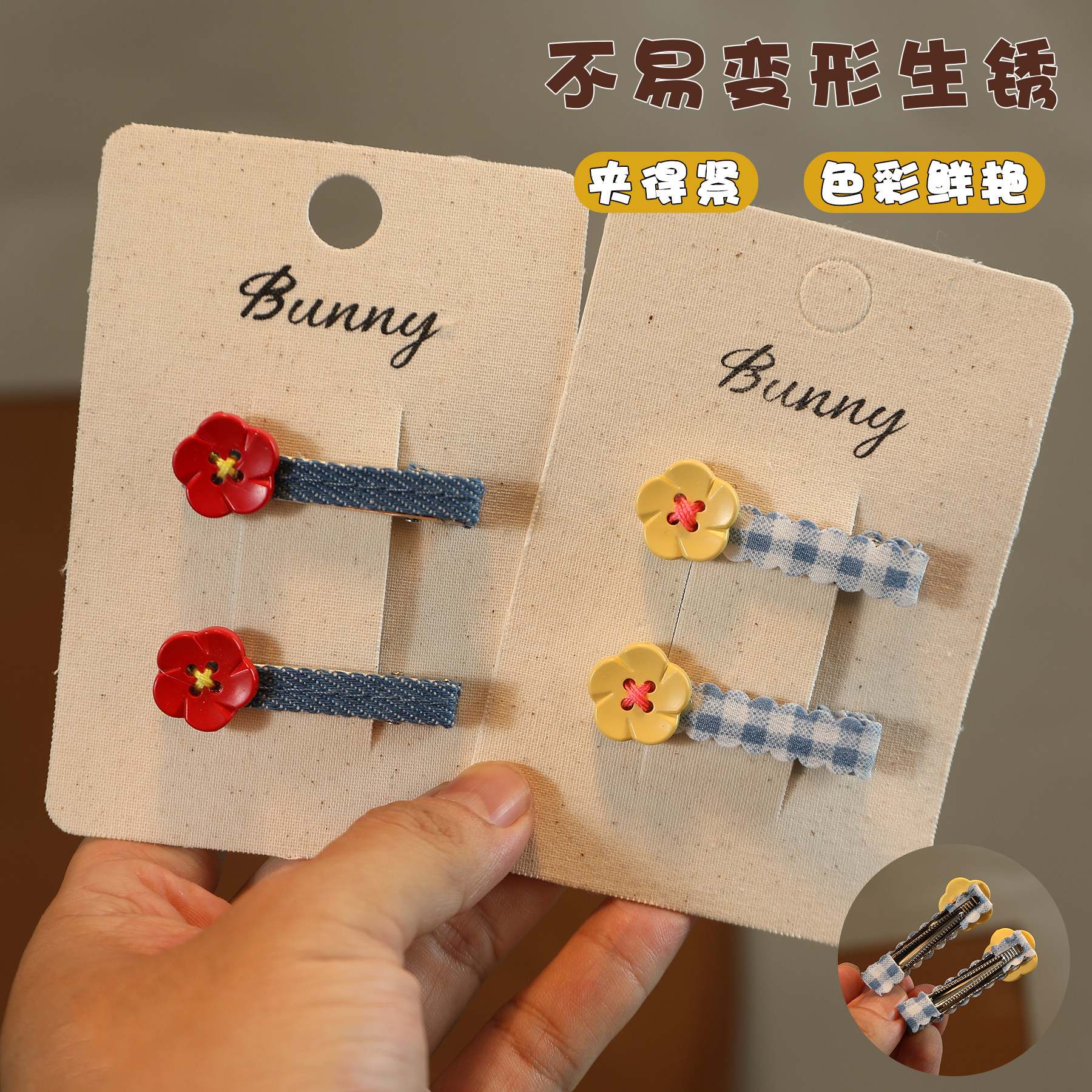 📚 儿童简约一朵小红花发夹甜美女童红色黄色花朵一字鸭嘴夹头饰发饰