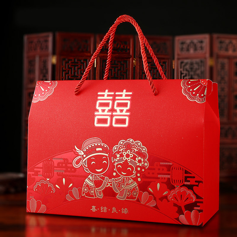 📚 婚礼手提袋中式喜糖礼盒结婚回礼包装盒喜结良缘伴手纸盒婚庆用品