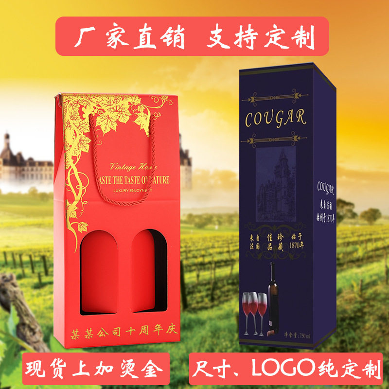 📚 现货红酒包装袋瓦楞啤酒礼盒定制米酒手提纸袋子跨境葡萄红酒纸盒