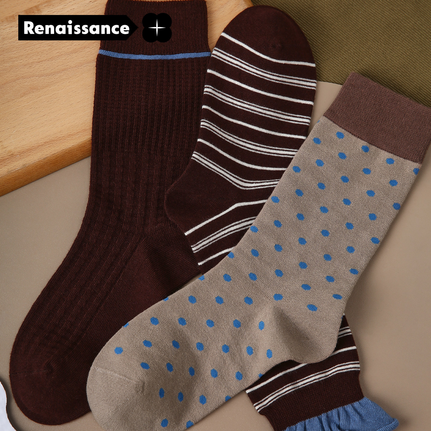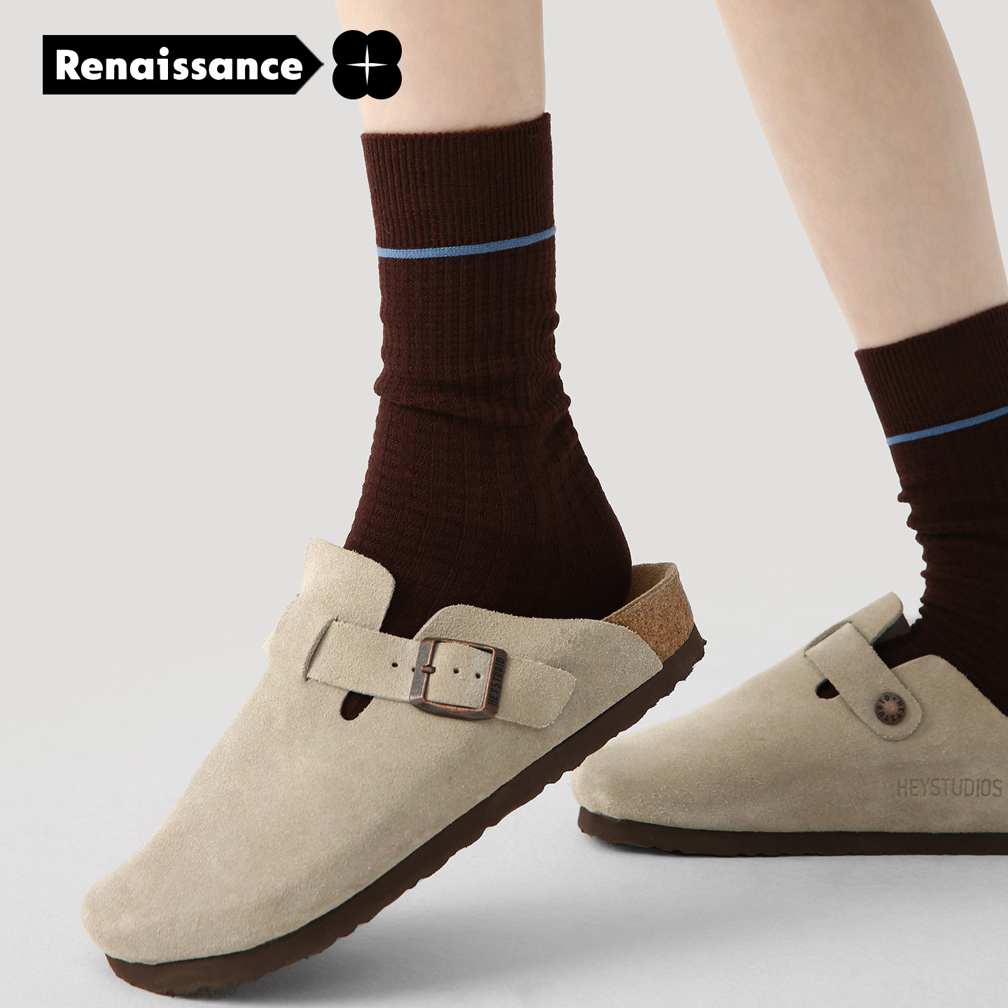📚 Renaissance春秋袜子女少女风简约条纹时尚百搭秋季款堆堆中筒袜