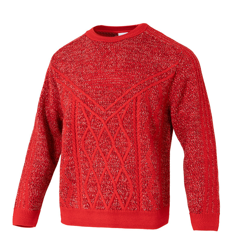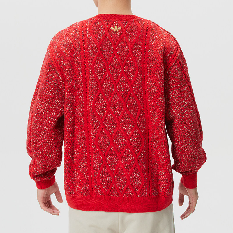 📚 阿迪达斯三叶草新年款红色毛衣男装26春季运动圆领套头衫KT0693