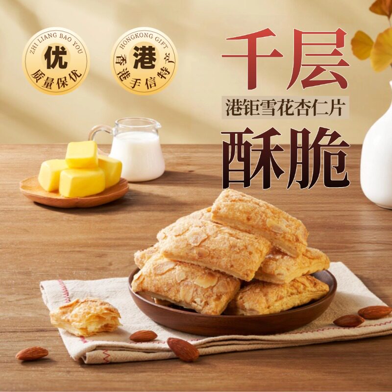 📚 澳门特产千层酥松塔旗舰店扁桃仁雪花杏仁片香脆香港点心零食深圳