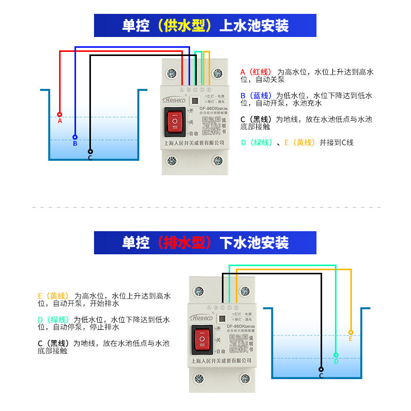 📚 上海人民水塔抽水位全自动控制器排水泵液位继电器浮球开关上水箱