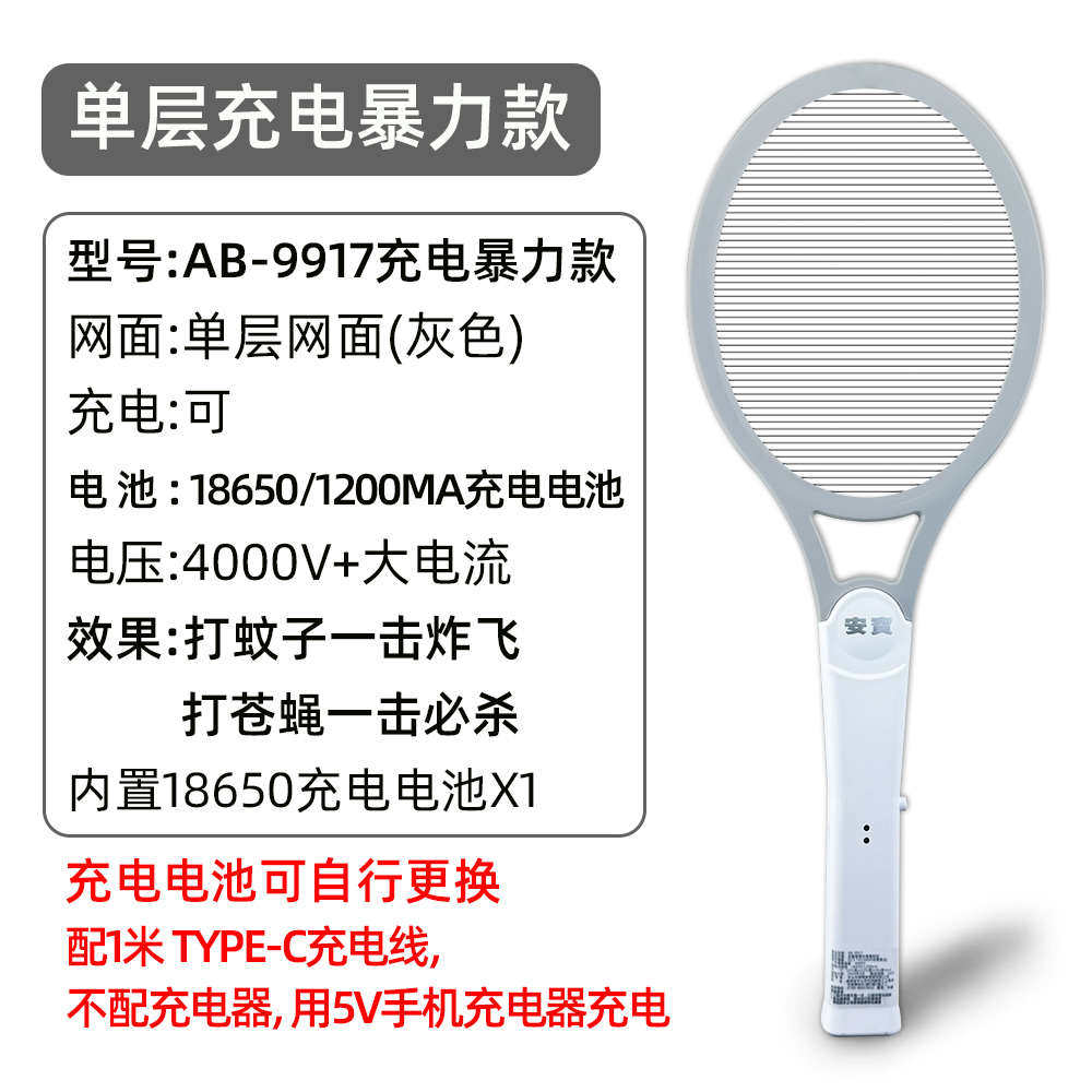 📚 安宝电蚊拍家用超强力灭蚊神器干电池充电式打苍蝇蟑螂灭蚊拍马蜂