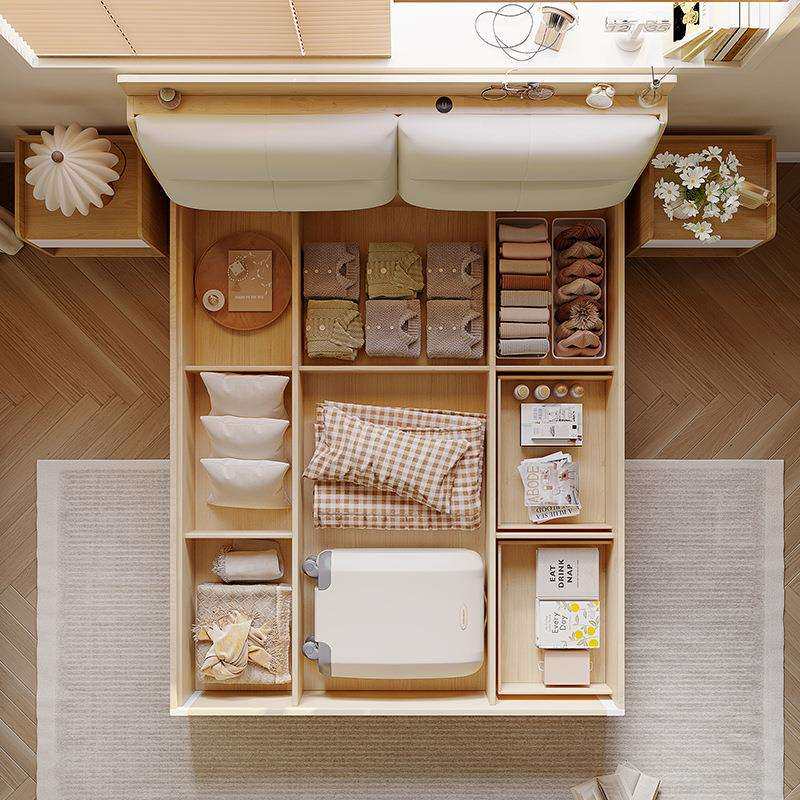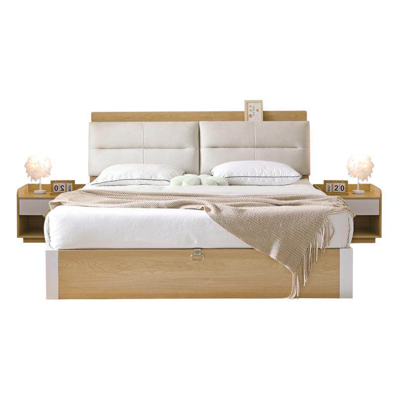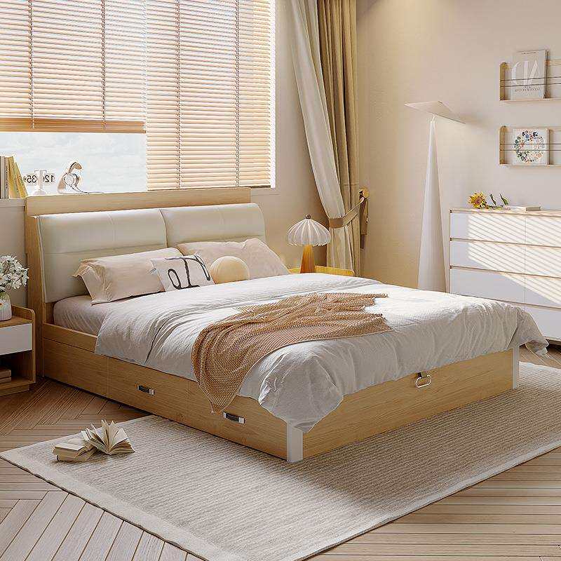 📚 木月双人家用卧收纳床M2C15约原主木色卧室简床板式气压储床物床
