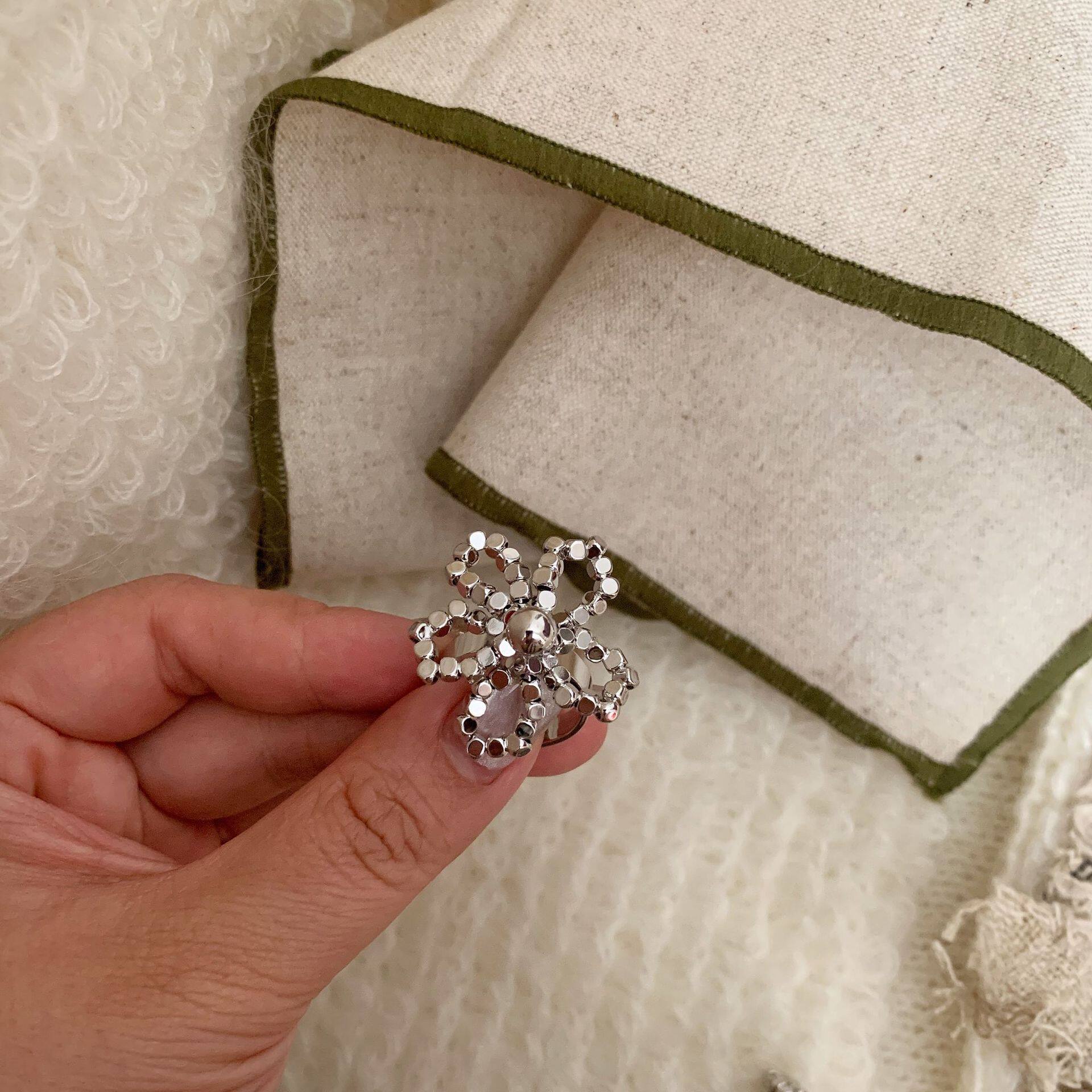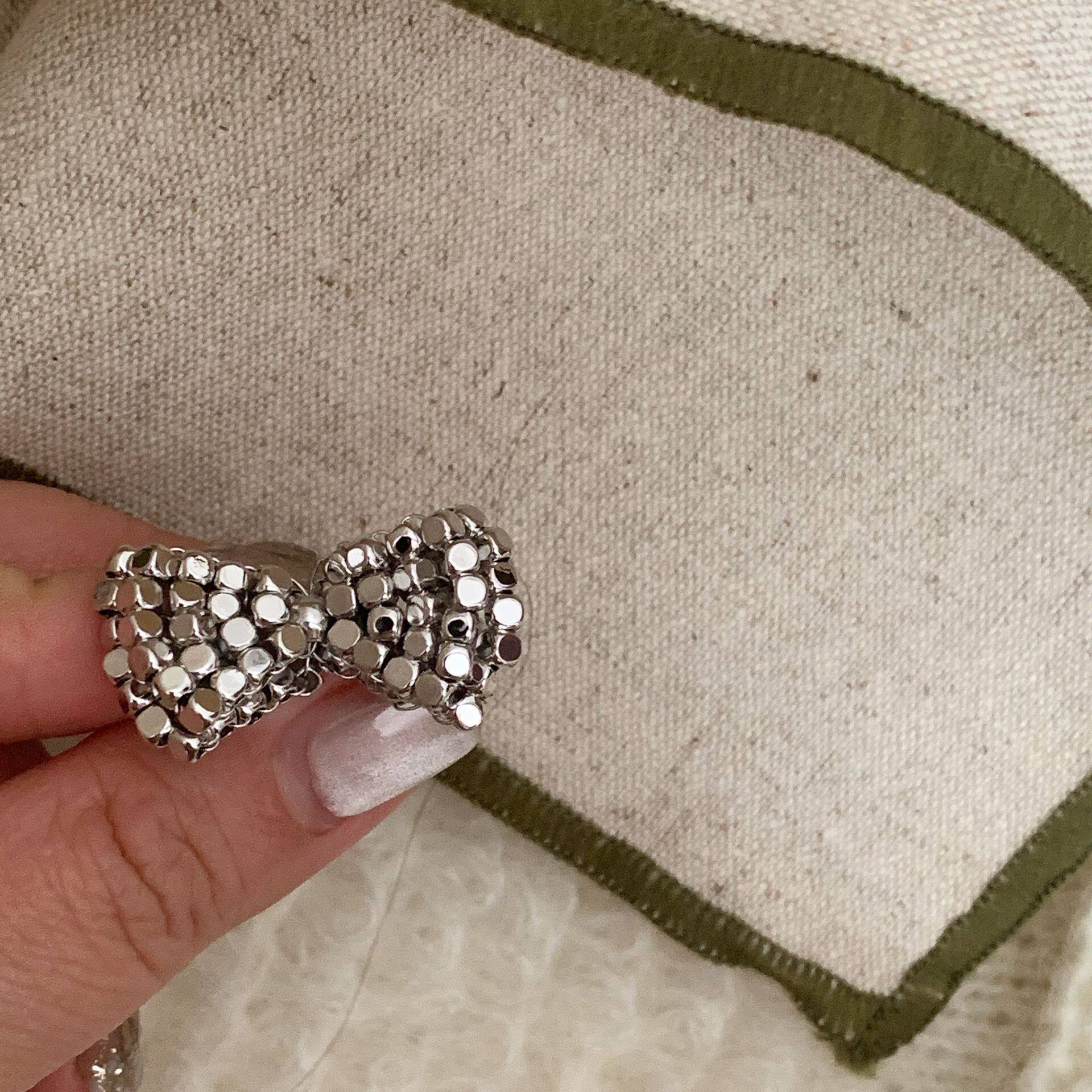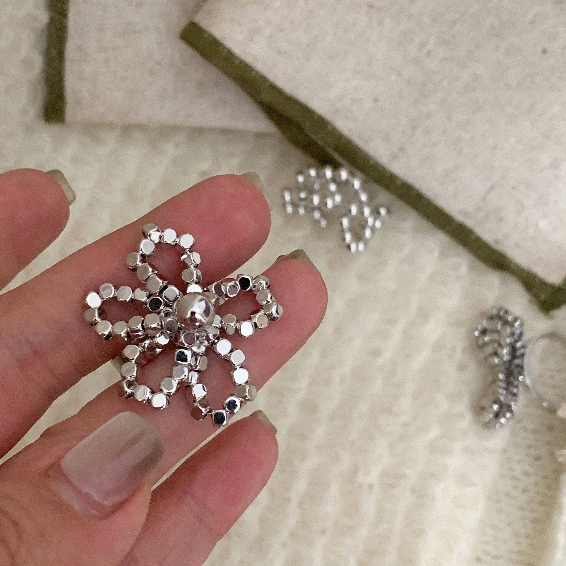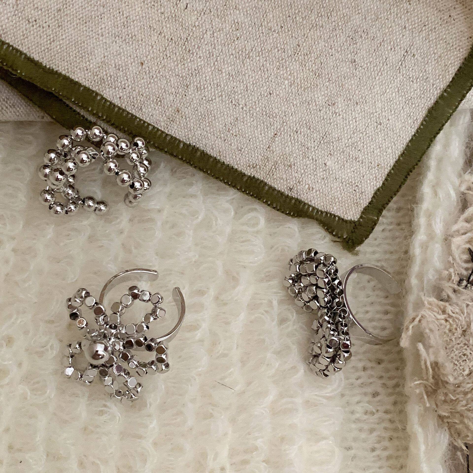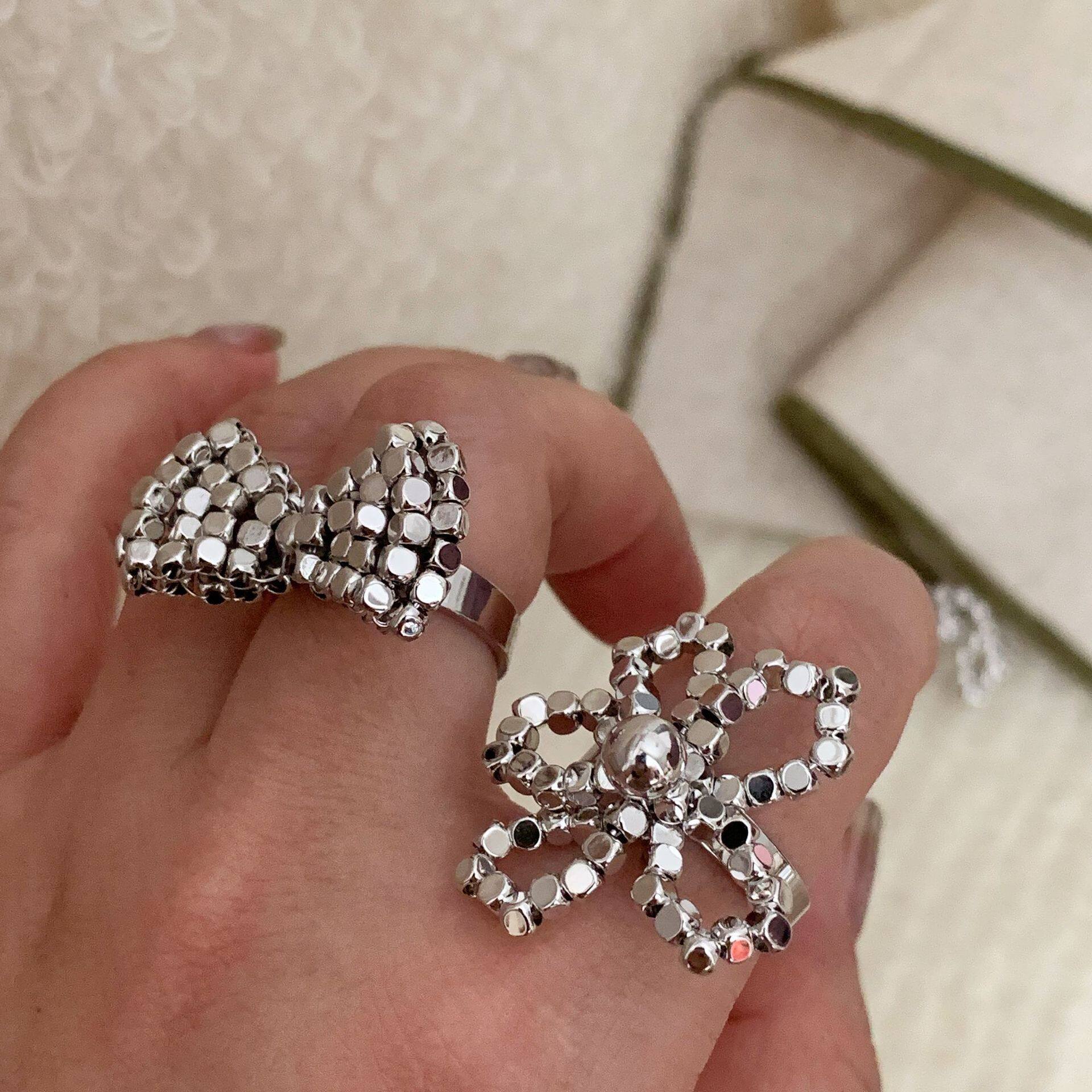 📚 韩国小众设计金属质感串珠戒指气质戒指女蝴蝶结花朵珠串编织戒指