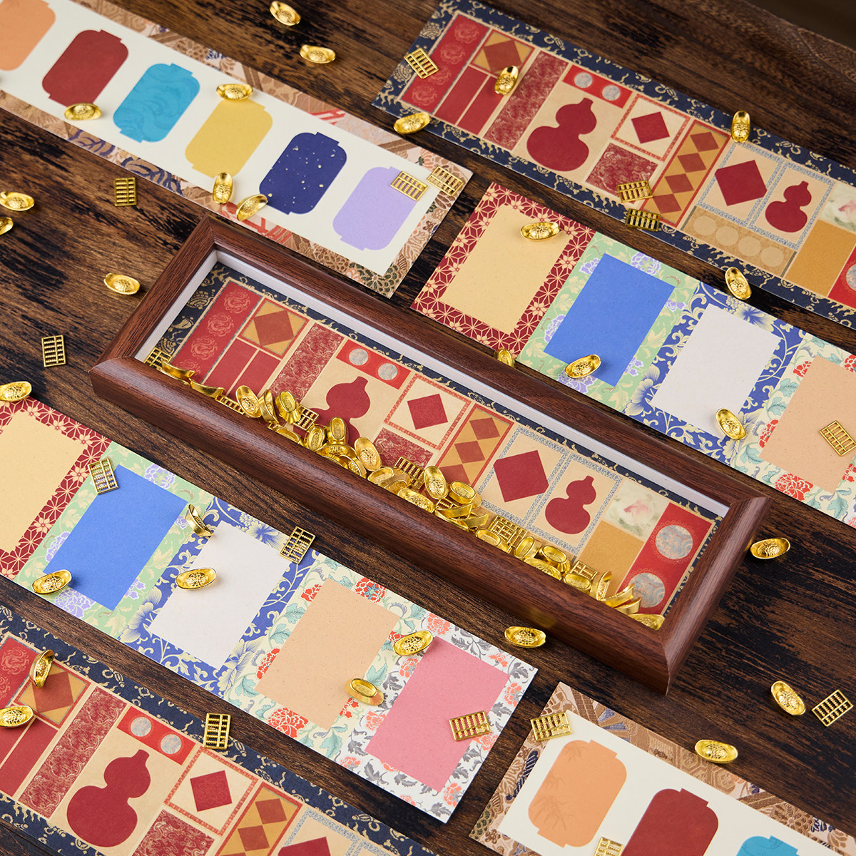 📚 湖颖 书法摆台相框书法文创摆件卡纸桌面装饰相框台画手写diy字画创意空白仿宋锦文创桌面装饰自写礼物