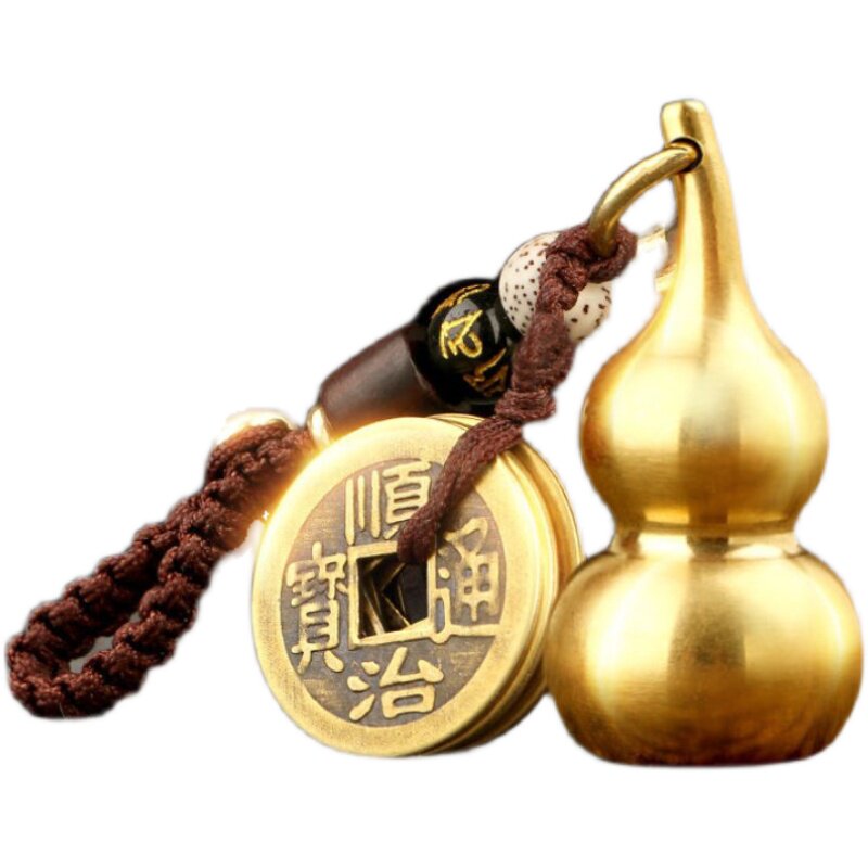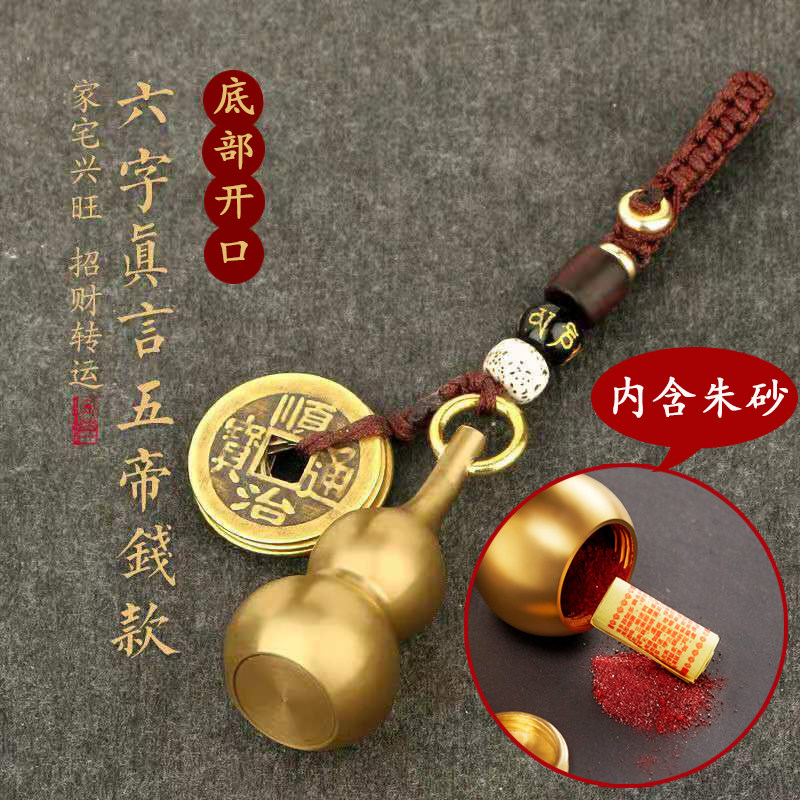 📚 纯黄铜葫芦钥匙扣朱砂转运五帝钱随身挂件开口大小号招财饰品礼物