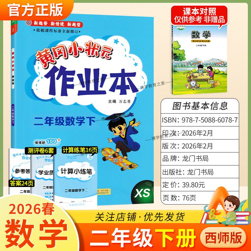 📚 2026春龙门书局黄冈小状元作业本二年级下册数学西师版教材同步练习册单元课时课后题同步夯实基础知识情境题新考题复习试卷