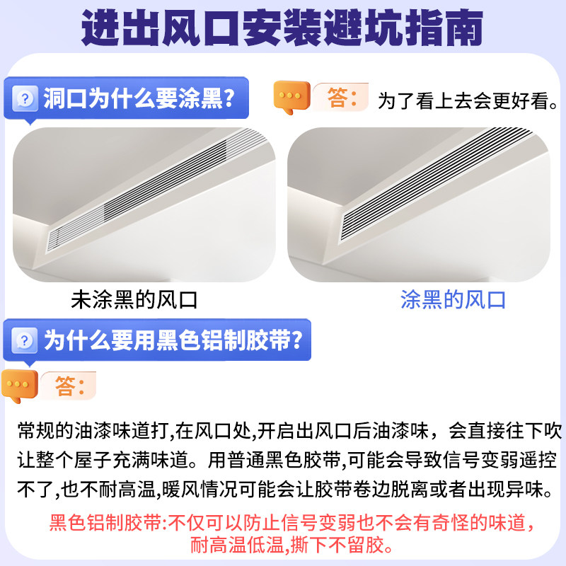 📚 中央空调出风口风管机不干胶黑色贴墙纸无边窄框极简预埋式格栅百