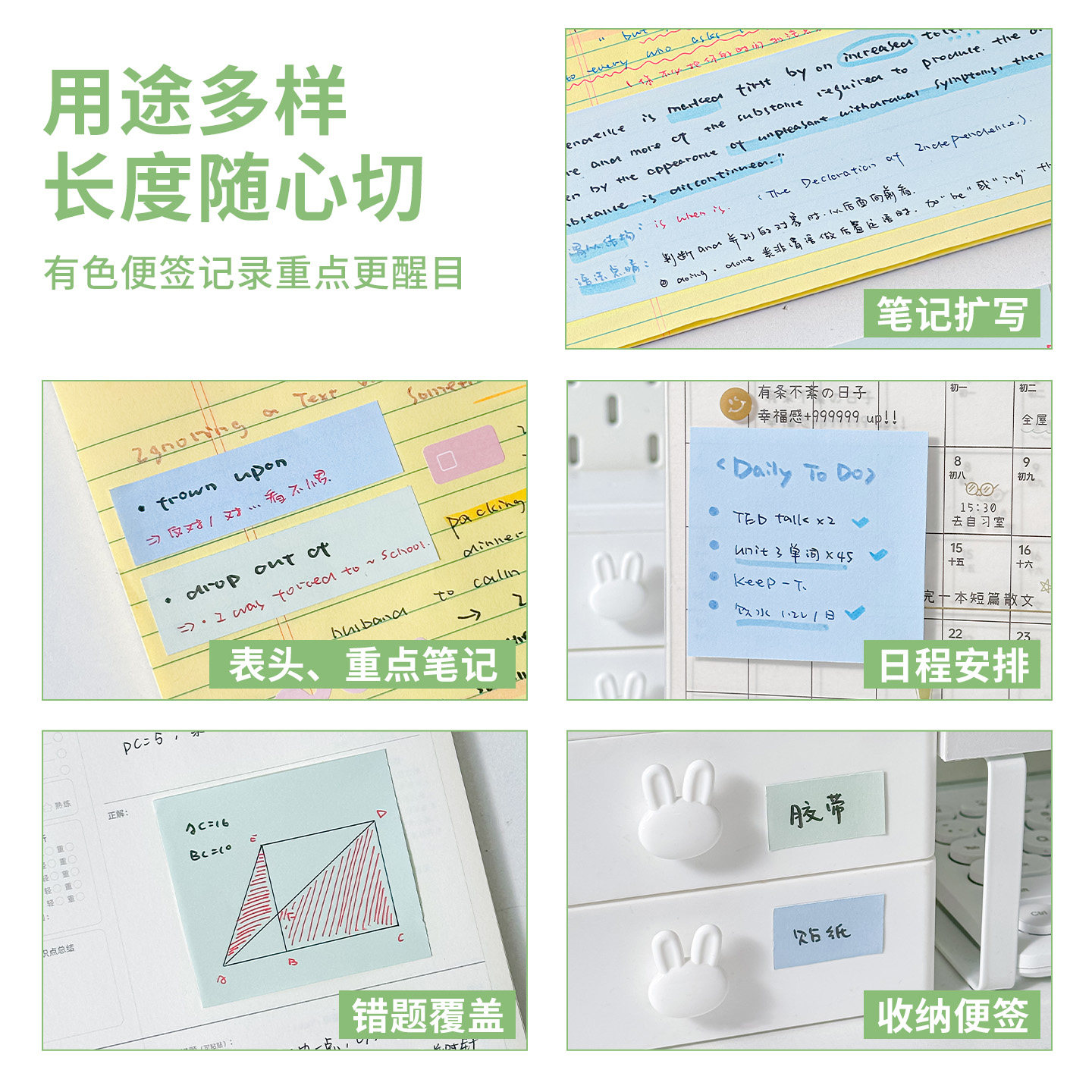 📚 【原创首发】三年二班 自由切便利贴初中生专用有粘性便签纸高颜值办公用索引贴标签贴纸可粘小学生任意裁剪
