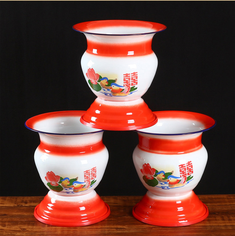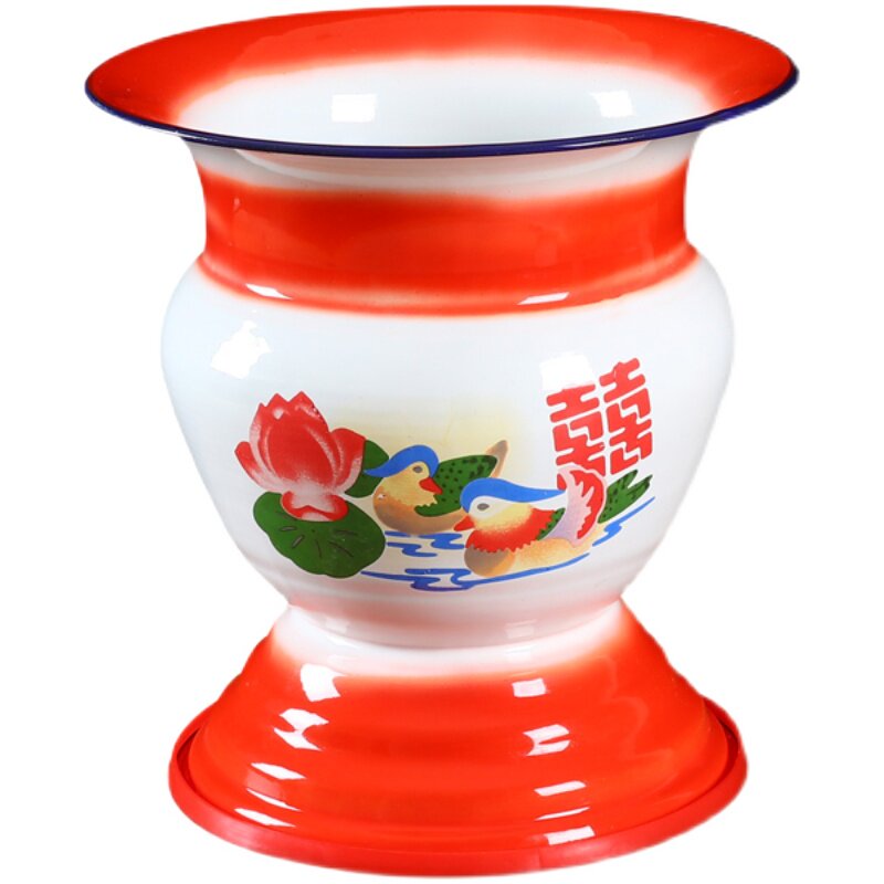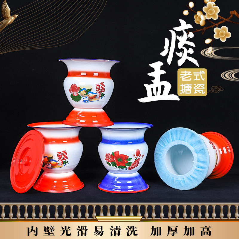📚 加厚成人高脚搪瓷痰盂痰桶婚庆儿童孕妇痰盂加高夜壶坐便器圆肚