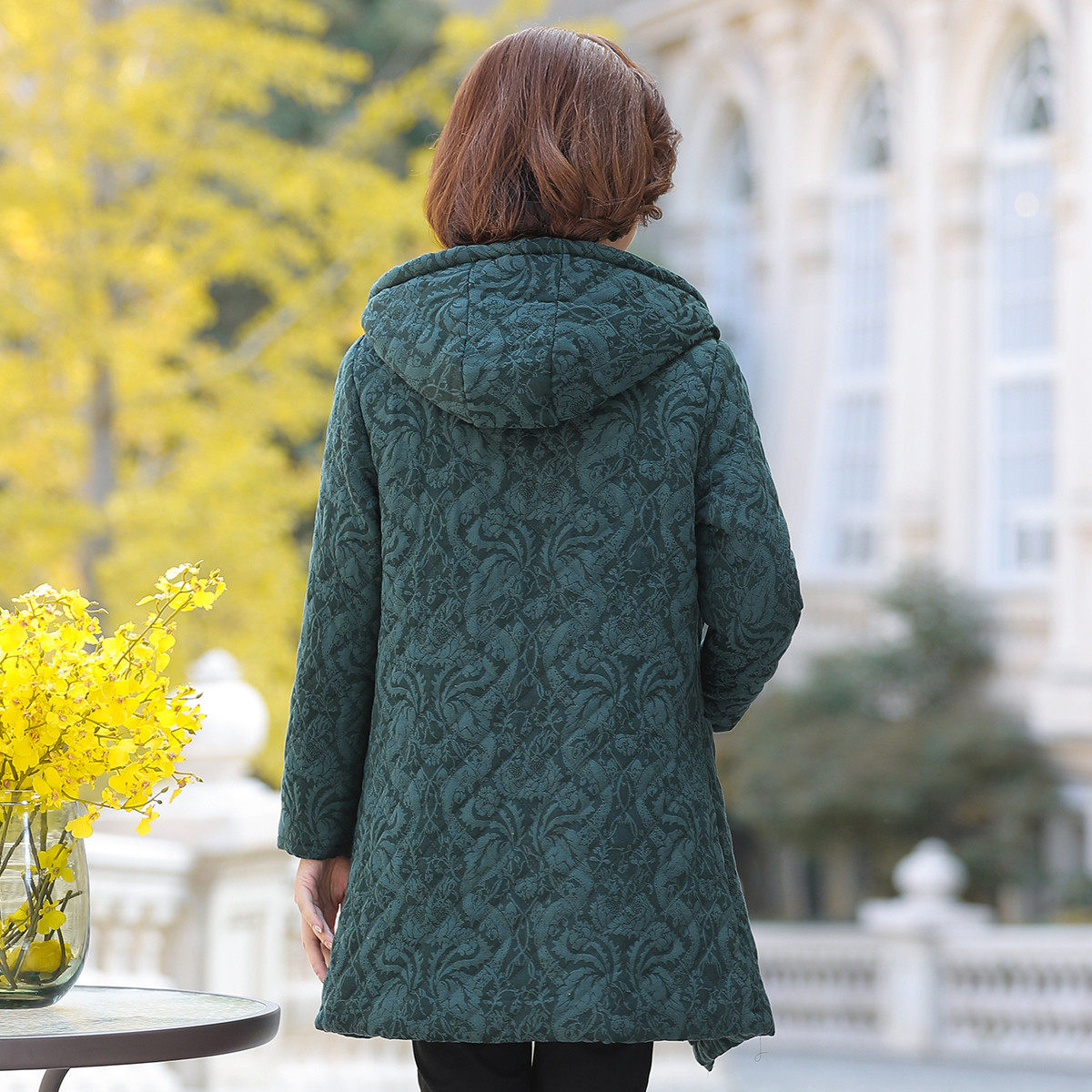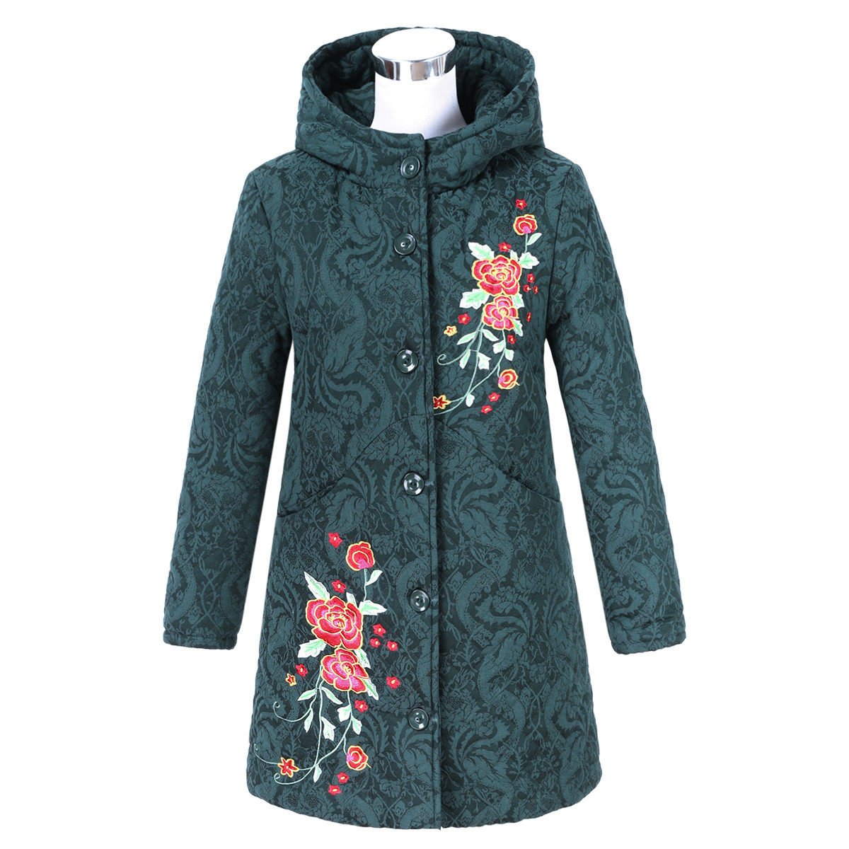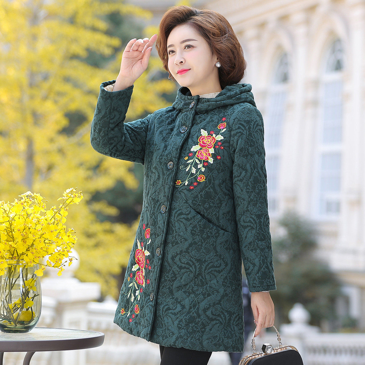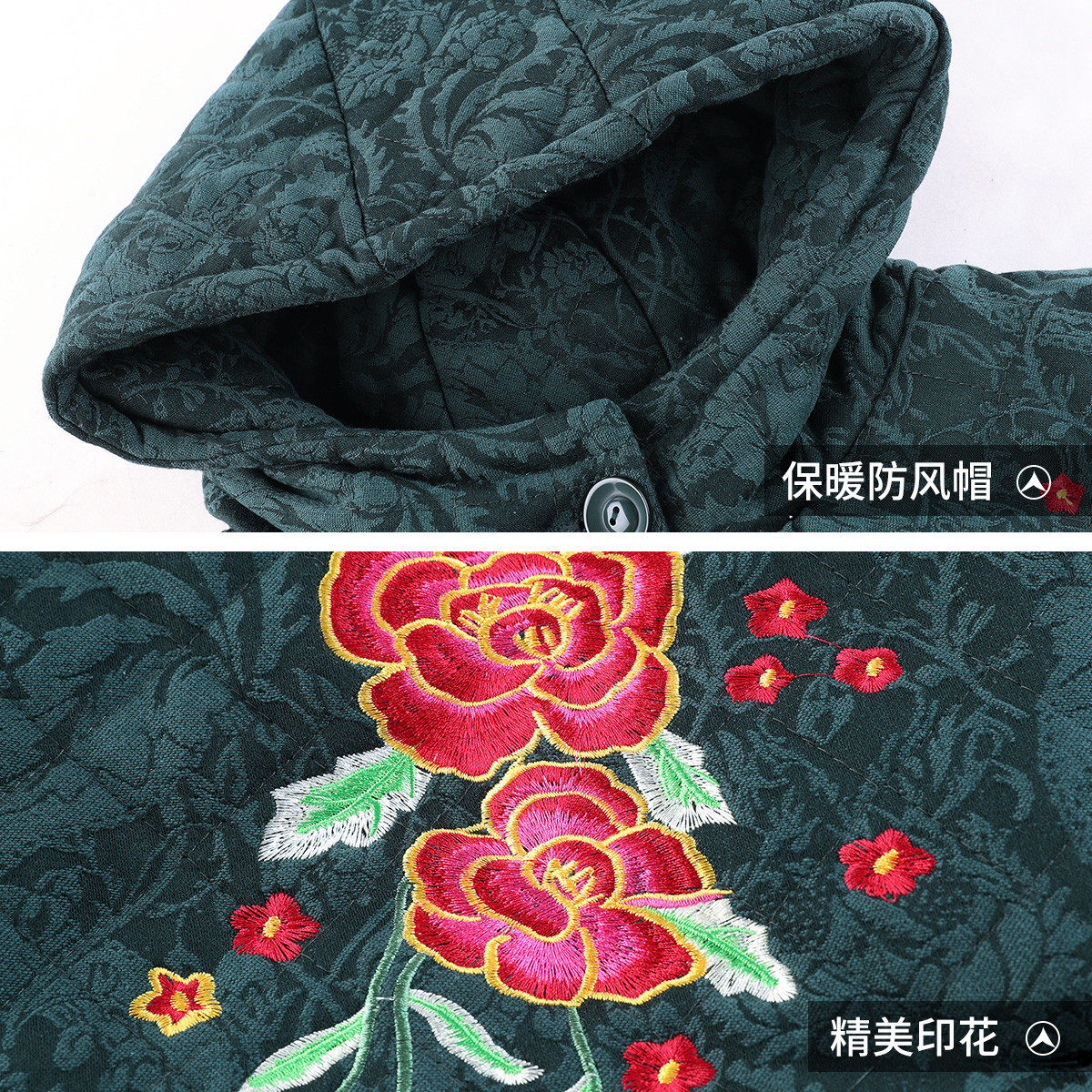 📚 台格内里加绒冬装妈妈装中老年女装棉袄连帽绣花中长款棉服棉衣女