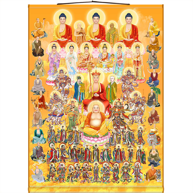 📚 三尺三卷轴挂画 全堂佛观世音文殊菩萨 三清天尊玉帝众神图佛像画