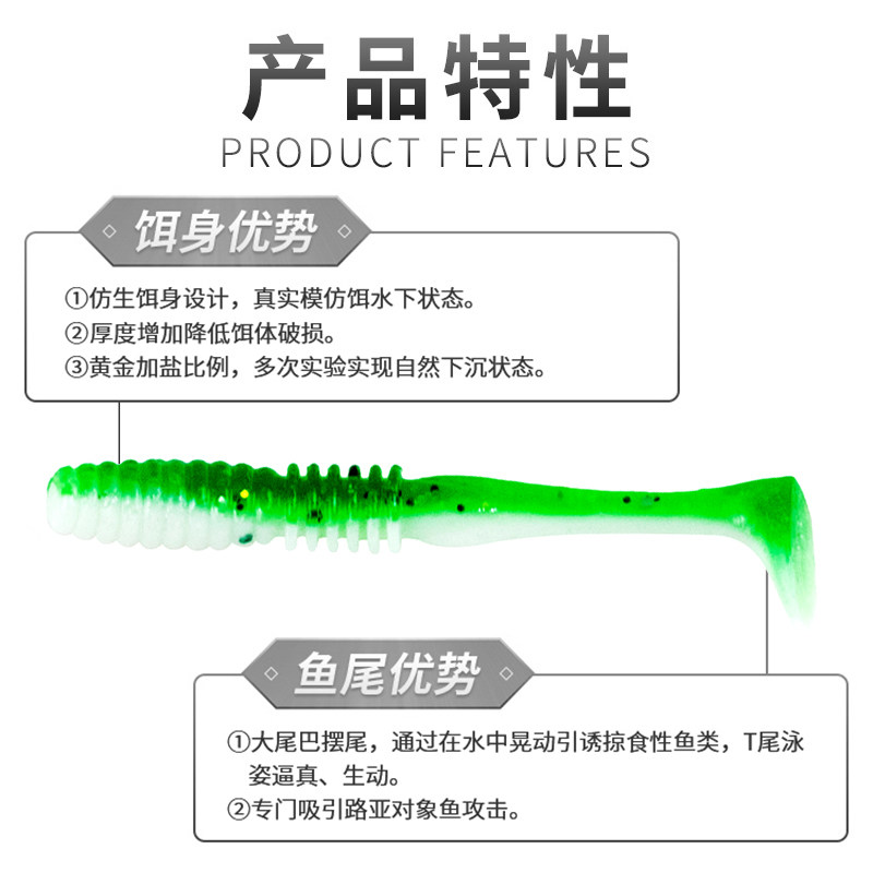 📚 水上狙击19新款T尾虫1.5寸软饵软虫假饵根钓饵桂鱼鲈鱼海水路亚饵