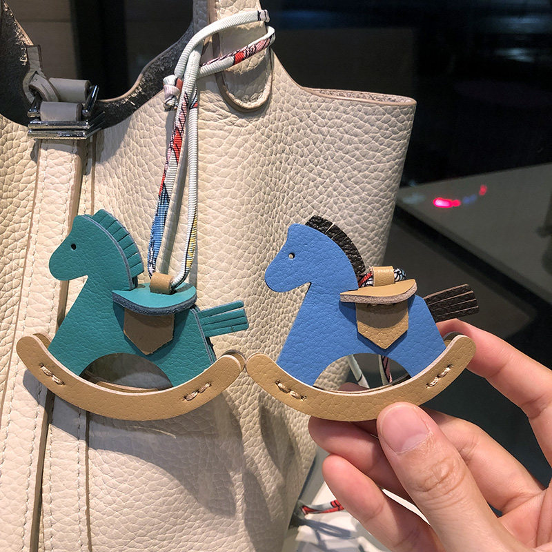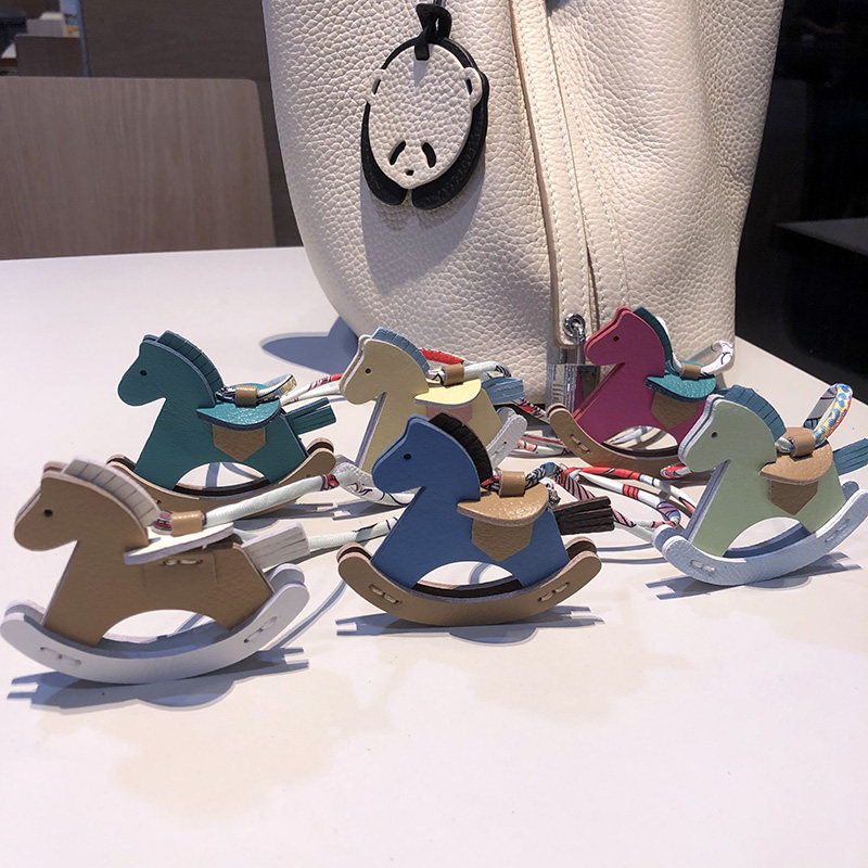 📚 H家新款小木马挂件 旋转摇摇马羊皮车钥匙扣创意手工缝制包挂饰潮