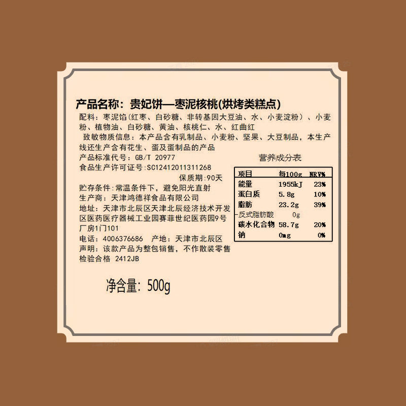 📚 祥禾饽饽铺枣泥核桃贵妃饼中式糕点心休闲零食中秋节伴手礼盒500g