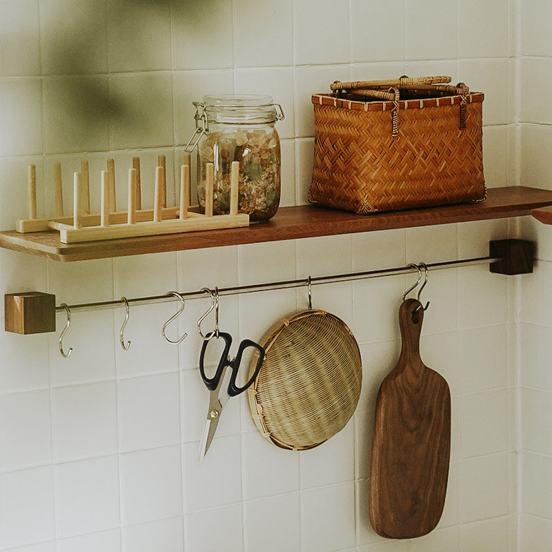 📚 本原窗帘杆挂杆 不锈钢/黄铜+黑胡桃木 毛巾杆服装多功挂杆展示杆