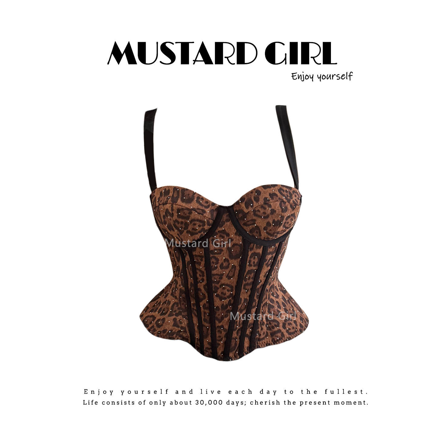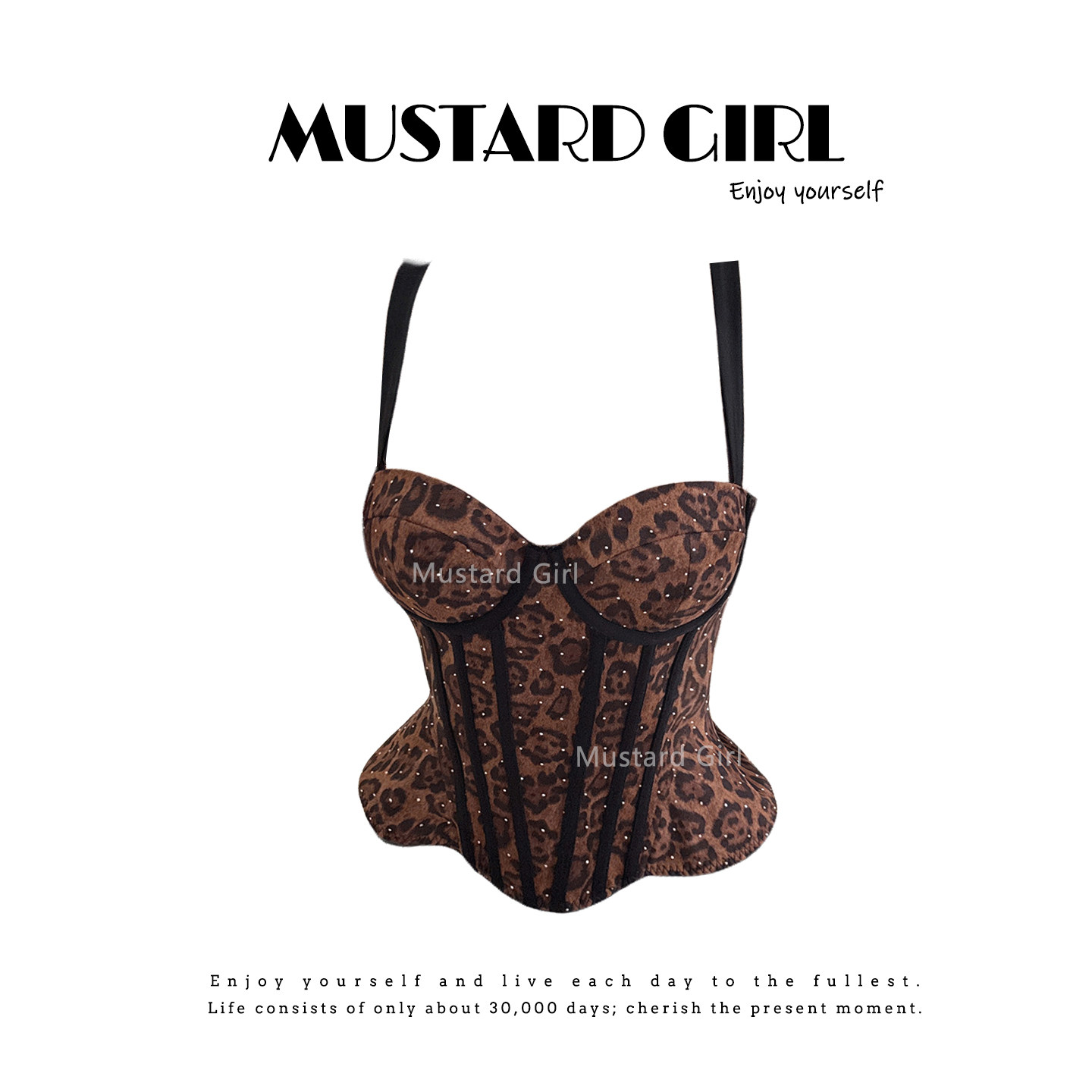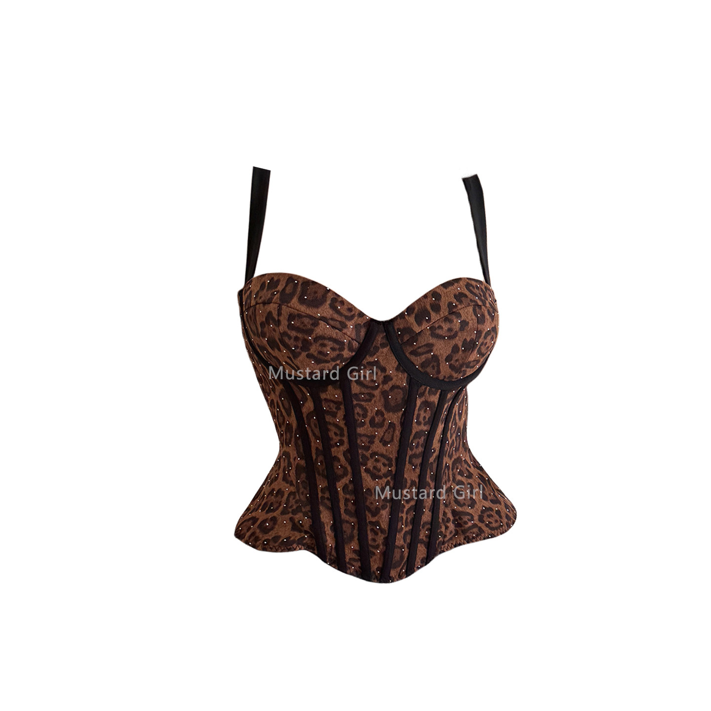 📚 辣妹豹纹性感吊带背心女秋冬内搭欧美修身束腰绑带胸衣鱼骨短上衣