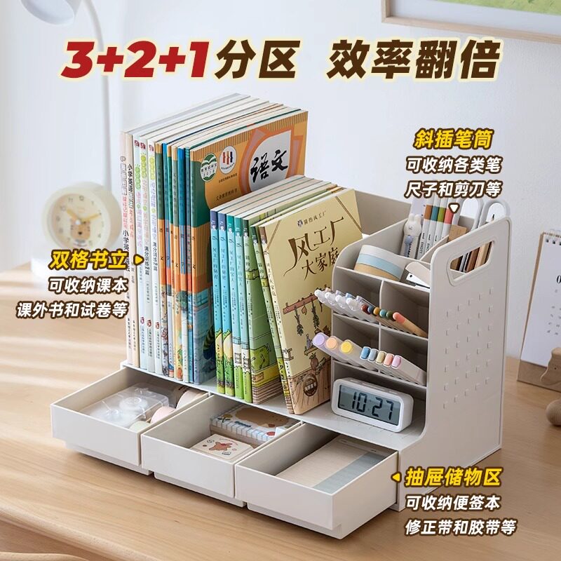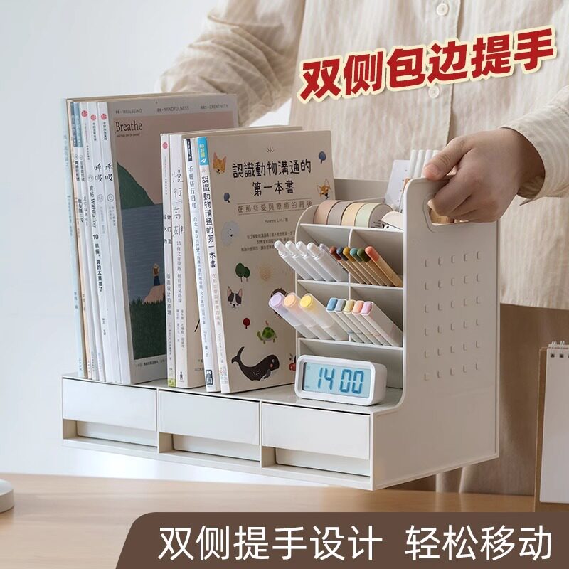 📚 多功能抽屉书立书架桌面书立架笔筒阅读架学生书本文具收纳分隔挡板立书架儿童高中看支架书夹文件架书桌抽拉