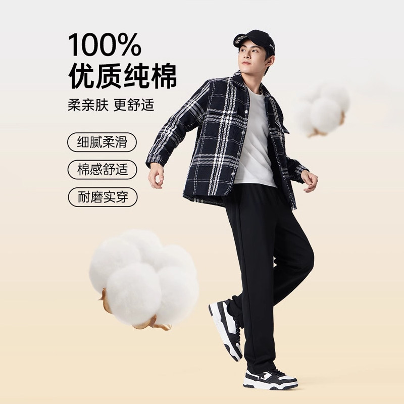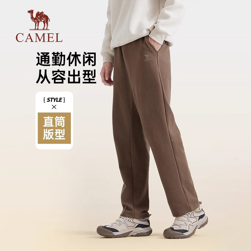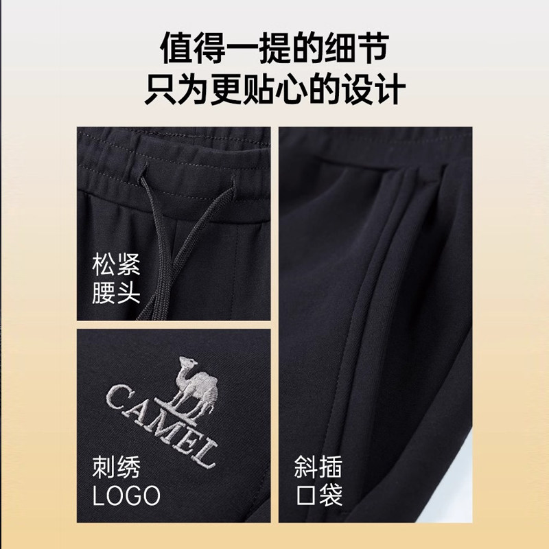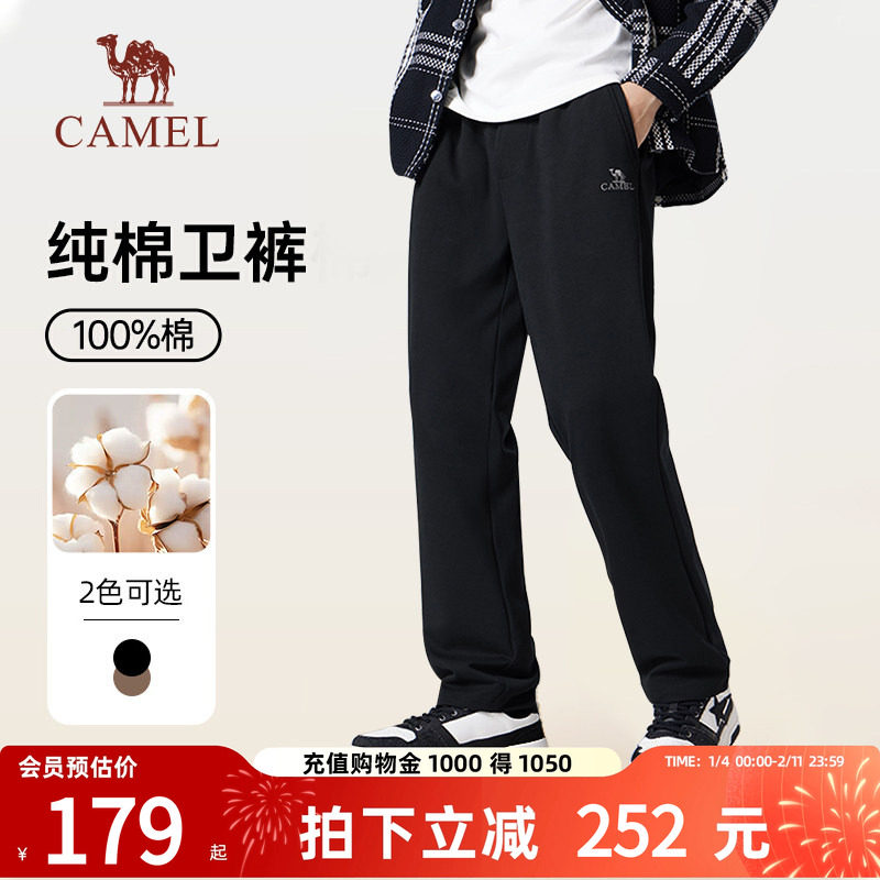 📚 骆驼男装纯棉针织卫裤男士春季黑色百搭宽松直筒休闲运动长裤子
