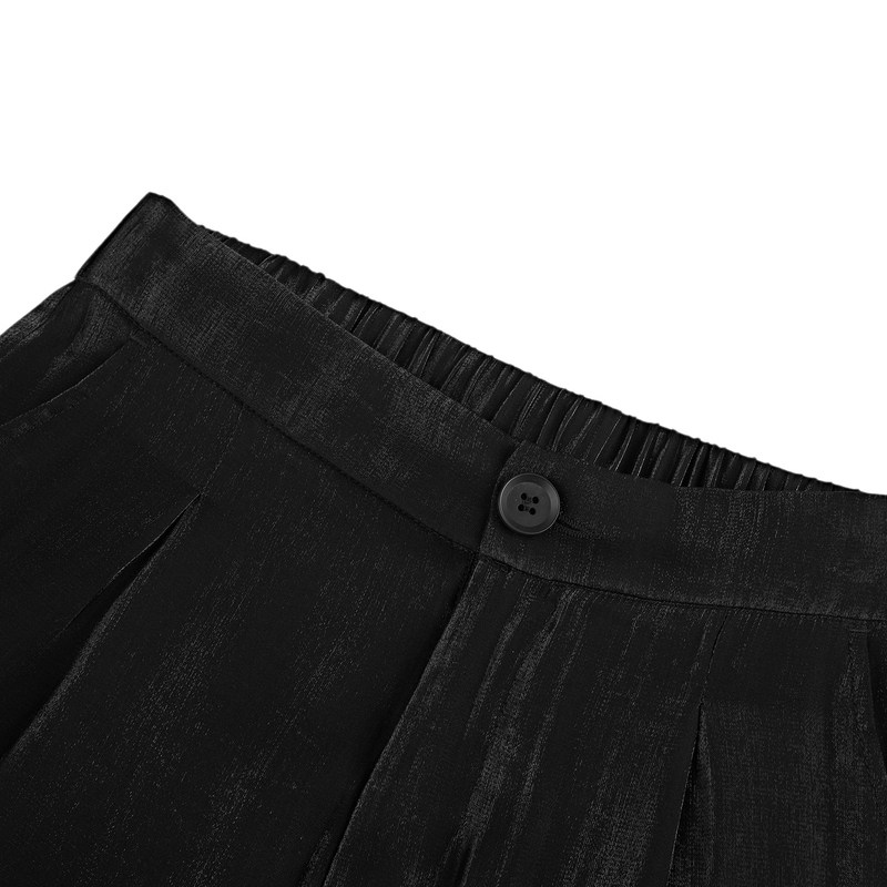 📚 【sdeer奥莱】圣迪奥秋松紧拼接暗褶垂坠黑色直筒长裤S21160814