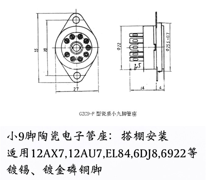 📚 小9脚 搭棚电子管座 小九脚管座胆座 12AX7 ECC83 12AU7插座