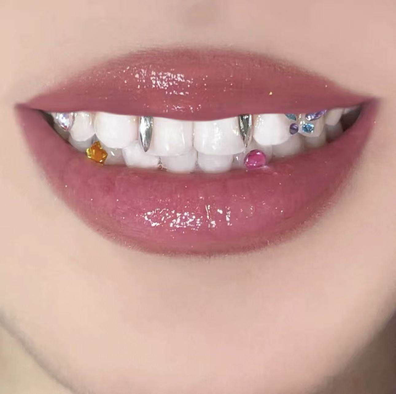 📚 天然宝石牙钻套装小众辣妹甜酷可爱爆闪虎牙自己粘牙钻diy材料包