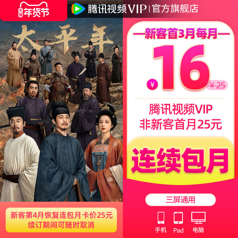 💥【连续包月】腾讯视频VIP会员月卡!小城大事,券后价仅25!