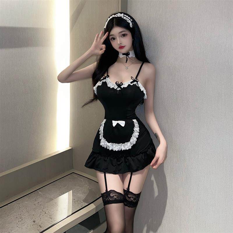 📚 角色扮演女仆女佣制服设计感蕾丝花边撞色无袖性感露背吊带连衣裙