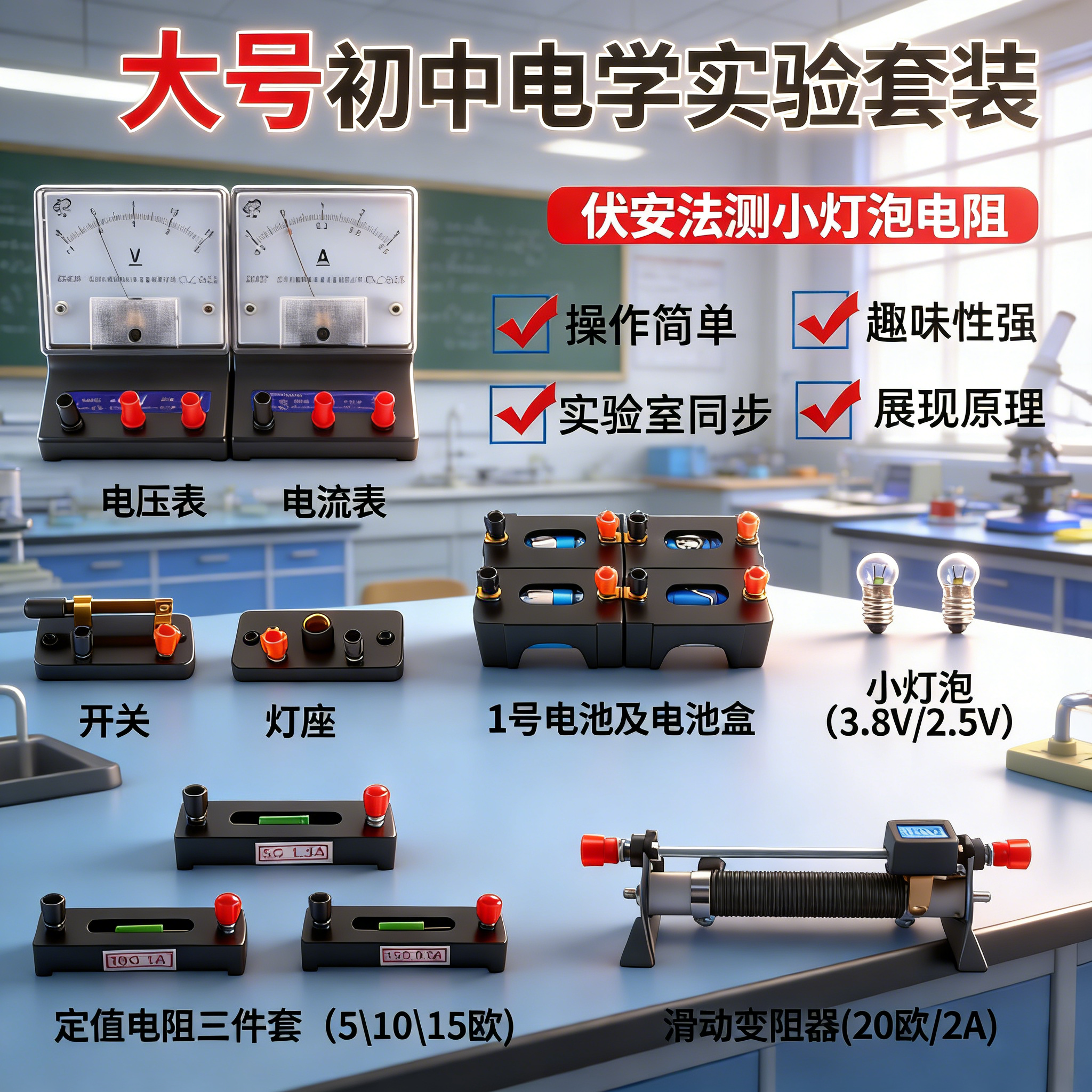 📚 伏安法测小灯泡的电功率和电阻套装初中初三九年级电学中考实验电流电压电阻的关系电流电压表测串联并联