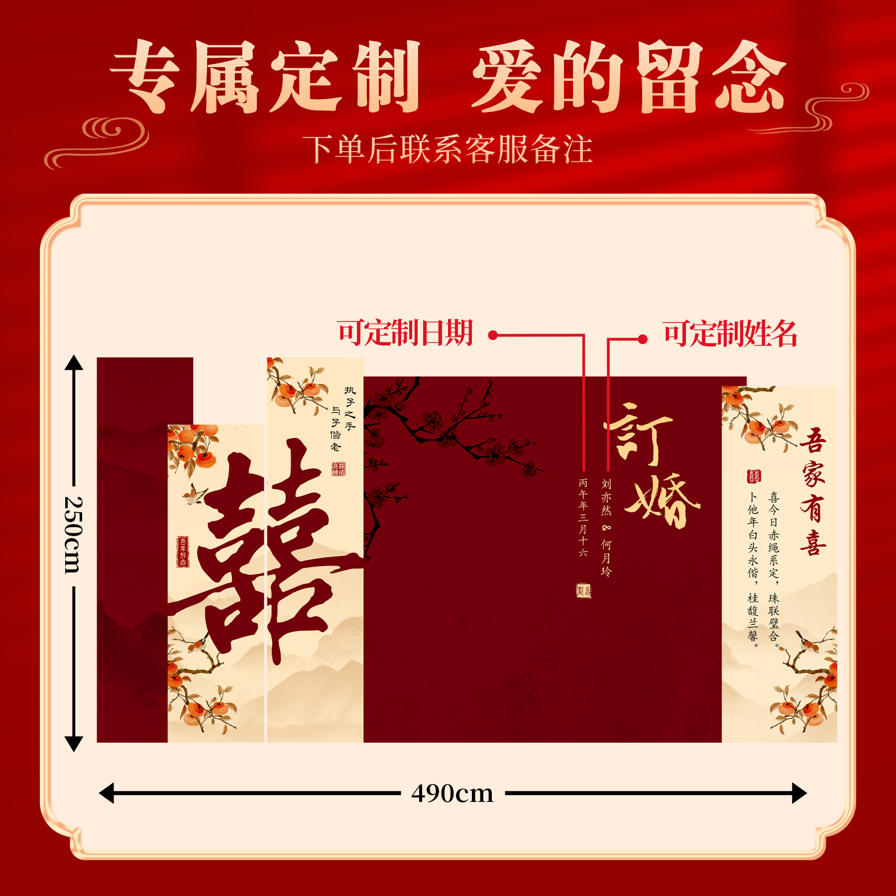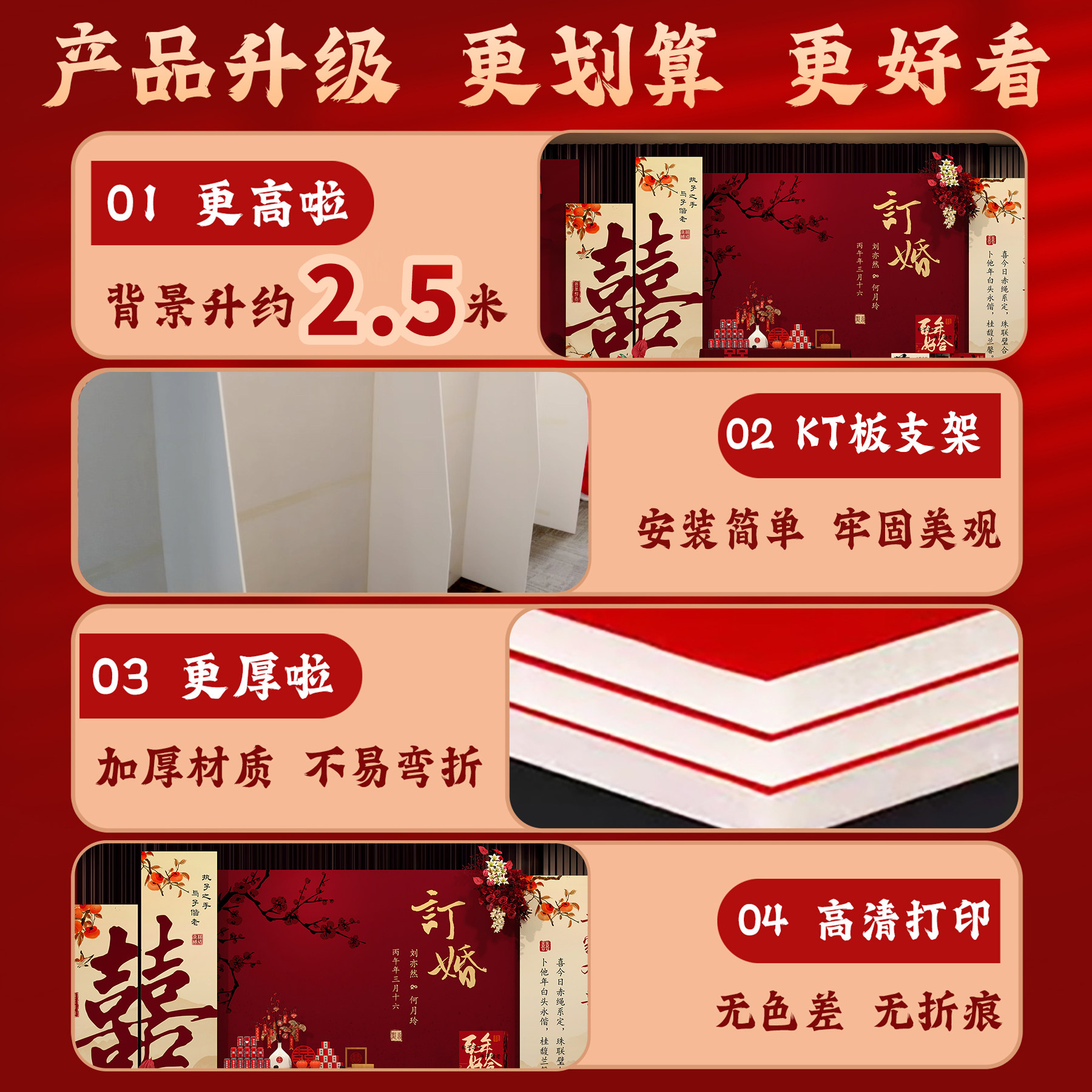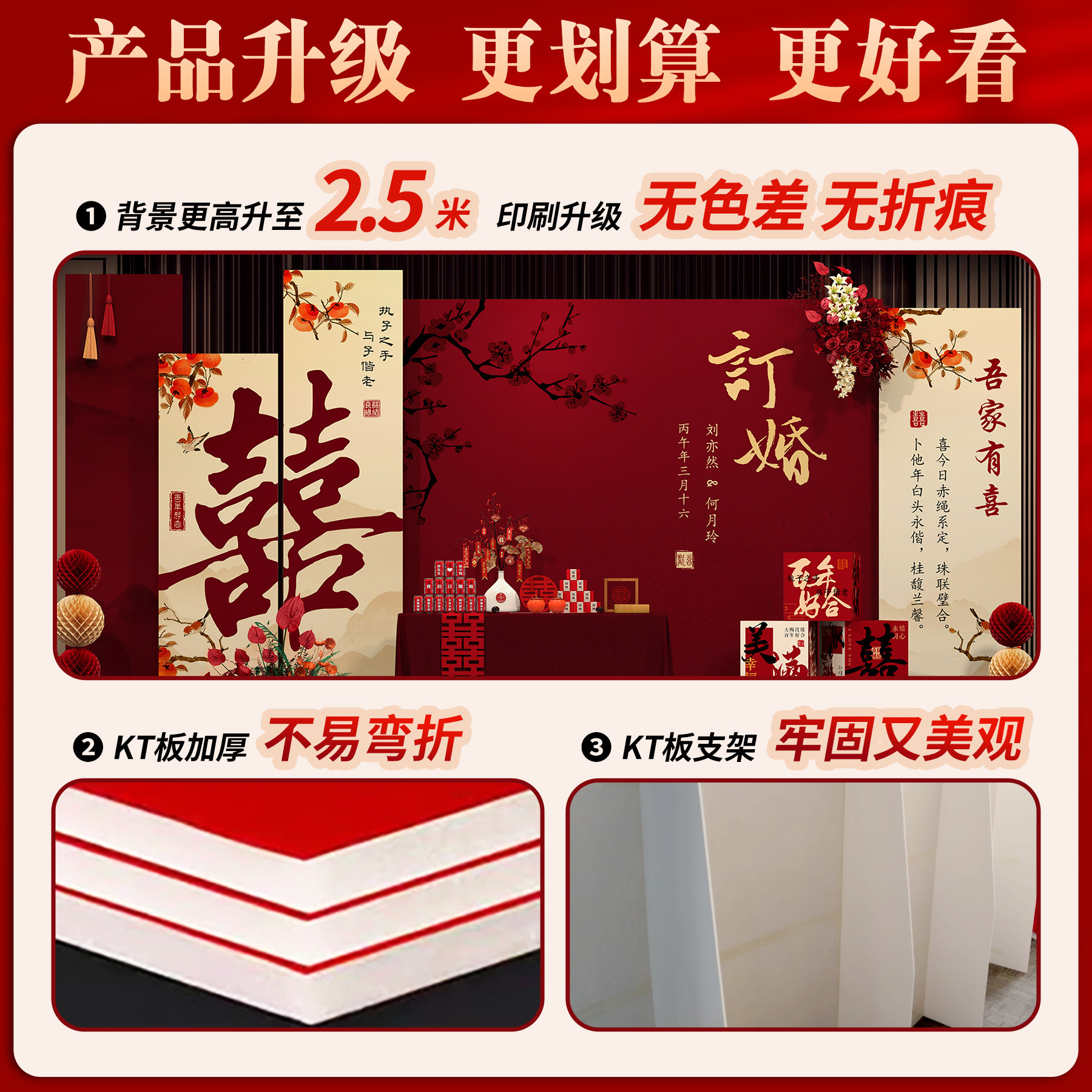 📚 新中式订婚宴布置装饰全套摆件摆台高级感2026女方家里kt板背景墙