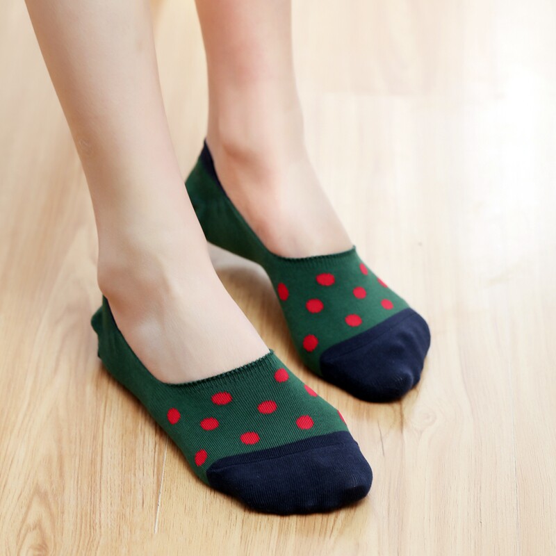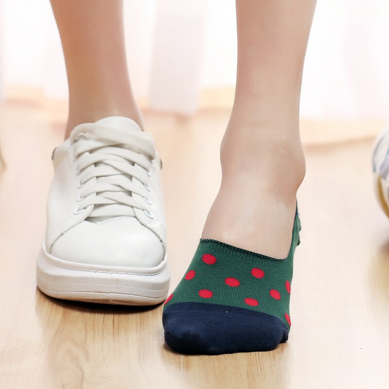 📚 韩国进口拼接波点女士硅胶隐形船袜混色5双装礼盒艾勒斐娅AEFFIA