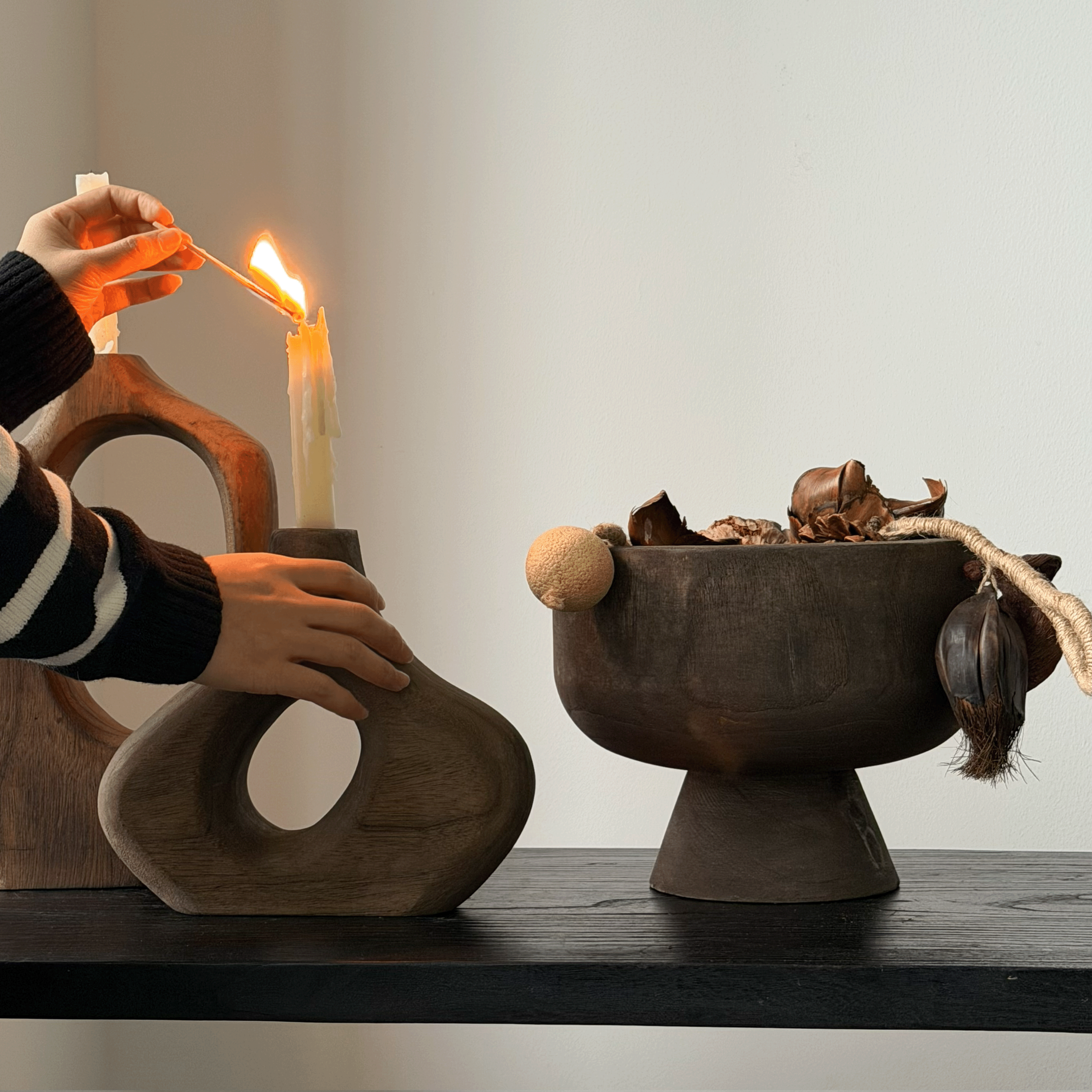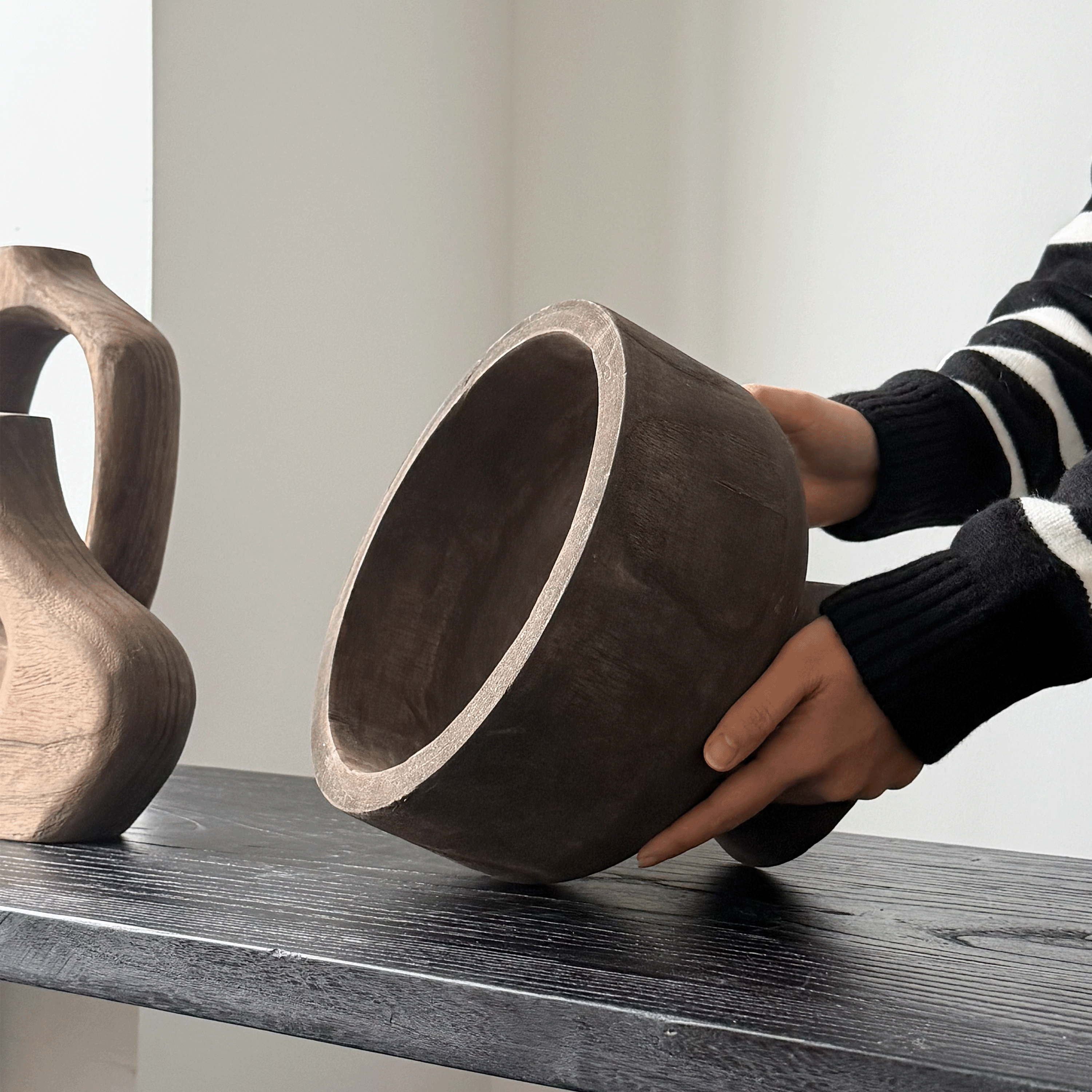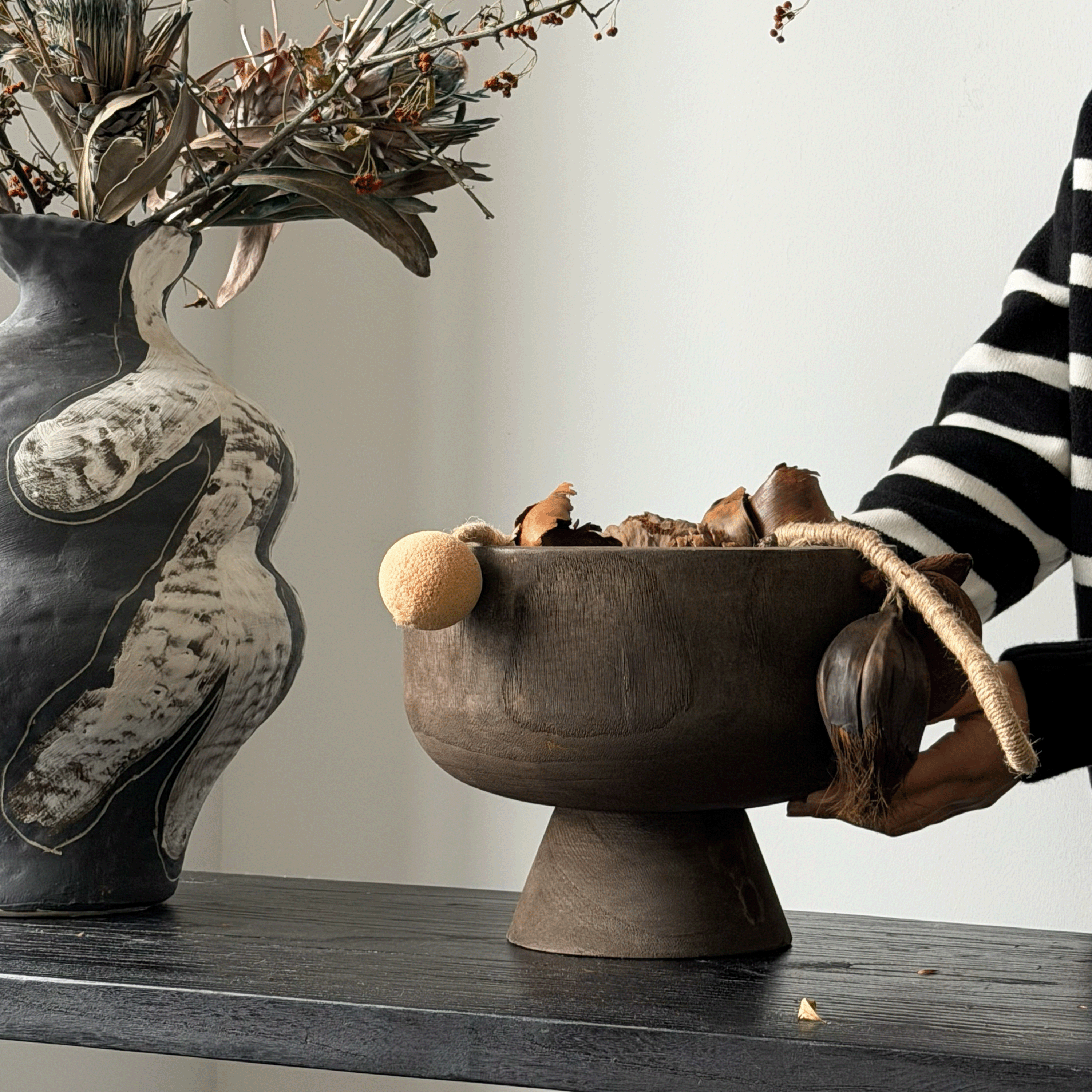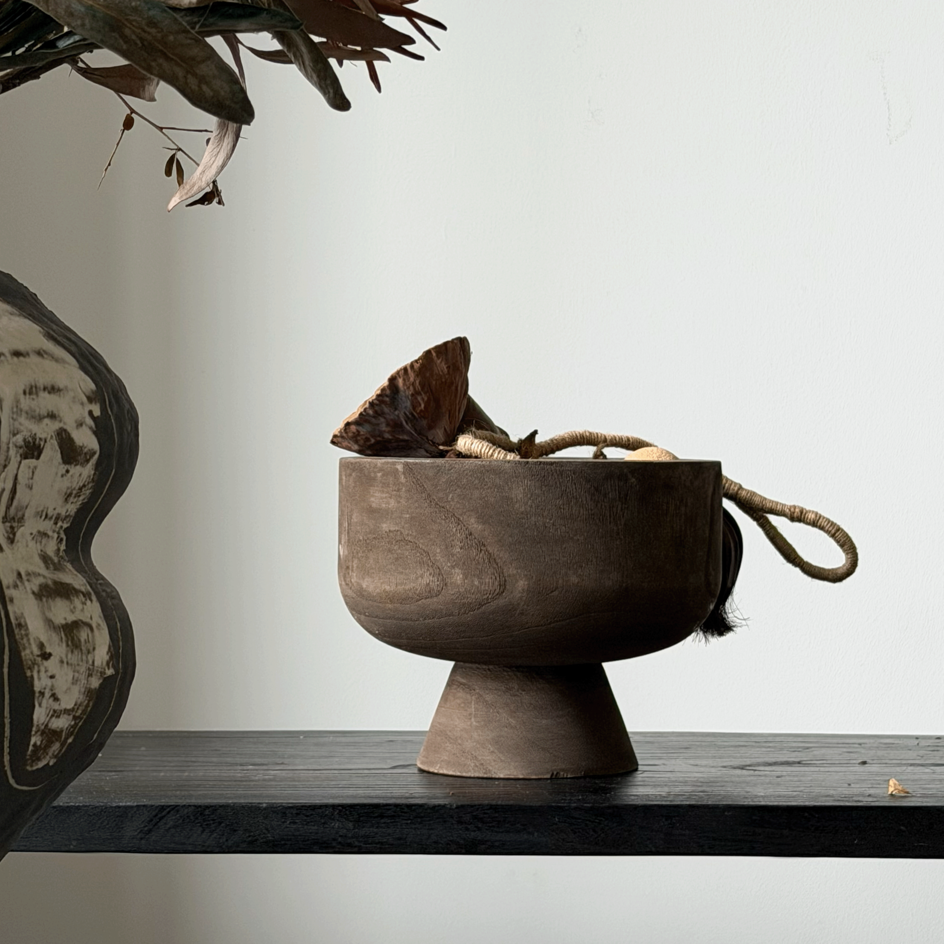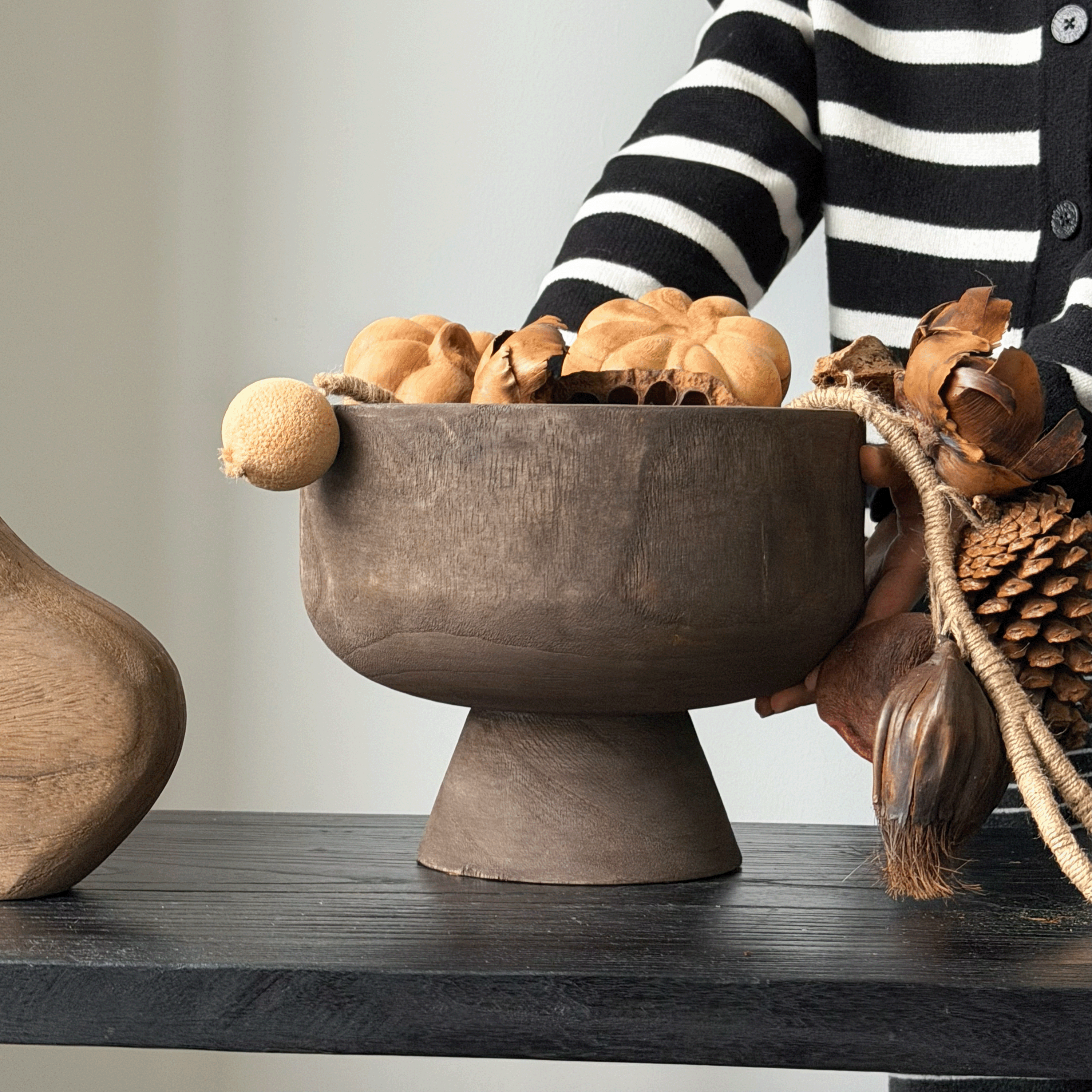 📚 侘寂风佛手柑托盘果盆木质高脚果盘收纳盘复古做旧干果装饰木盆