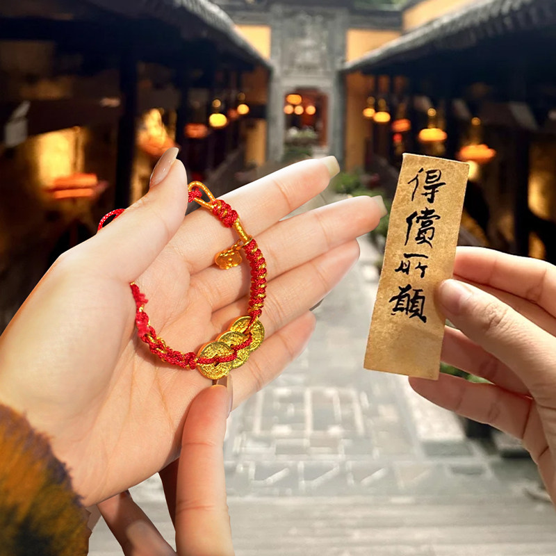 📚 朱炳仁铜乾道嘉五帝钱手链钱串子编织红绳情侣款铜钱手绳礼物