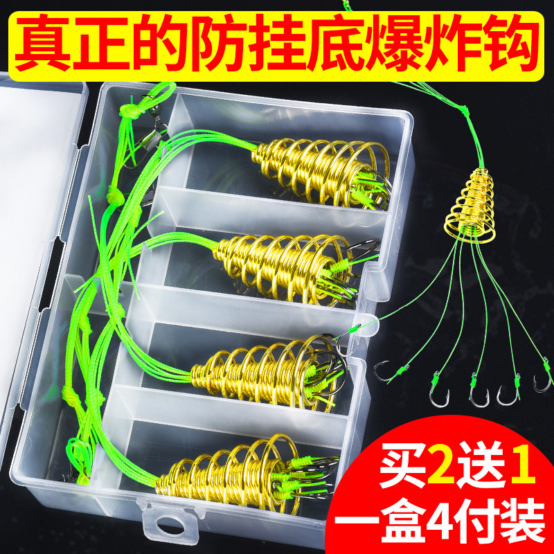 📚 防挂底爆炸钩套装钓组炸弹钩弹簧钩抛竿伊势尼鱼钩钓鲢鱼管付袖钩