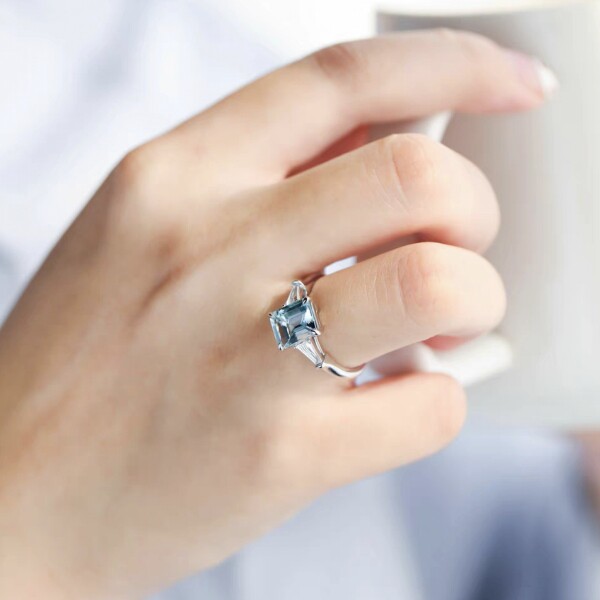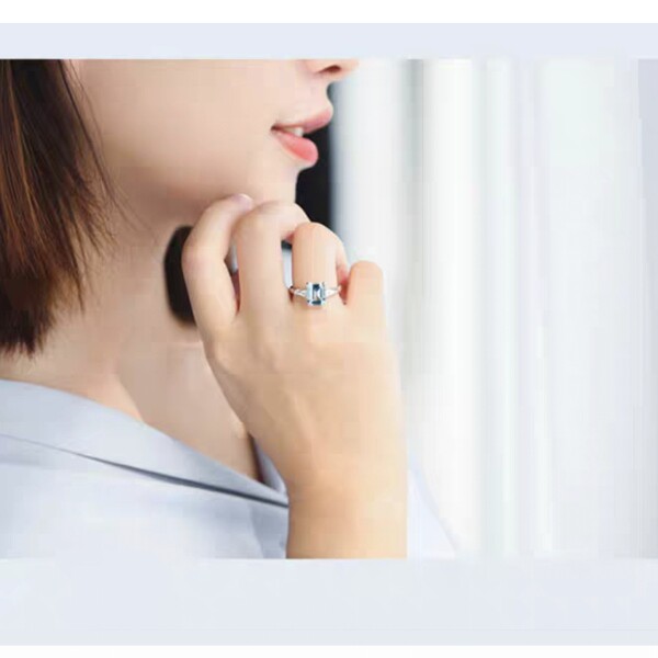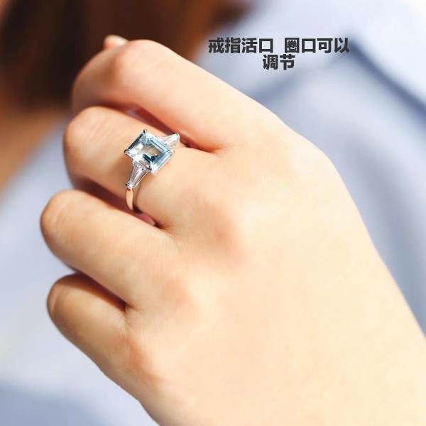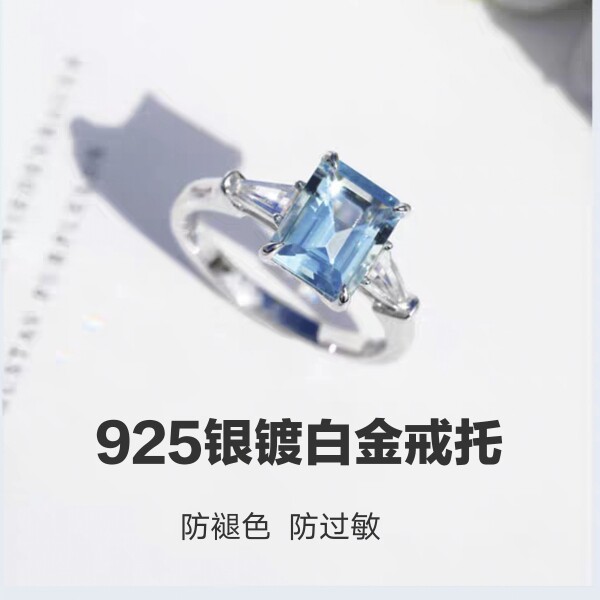 📚 天然蓝托帕石戒指女款宝石925银镀白金戒托水晶彩宝流行礼物证书