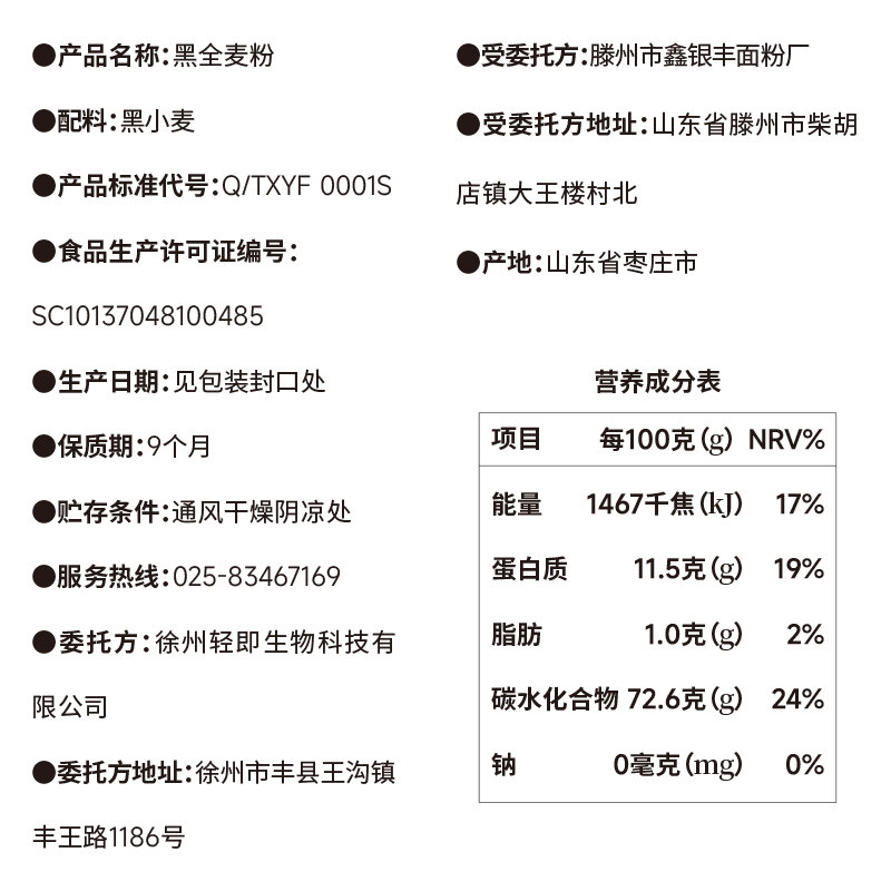 📚 黑全麦粉低脂黑小麦含麦麸杂粮粗粮面粉烘焙高筋吐司粉专用面包粉