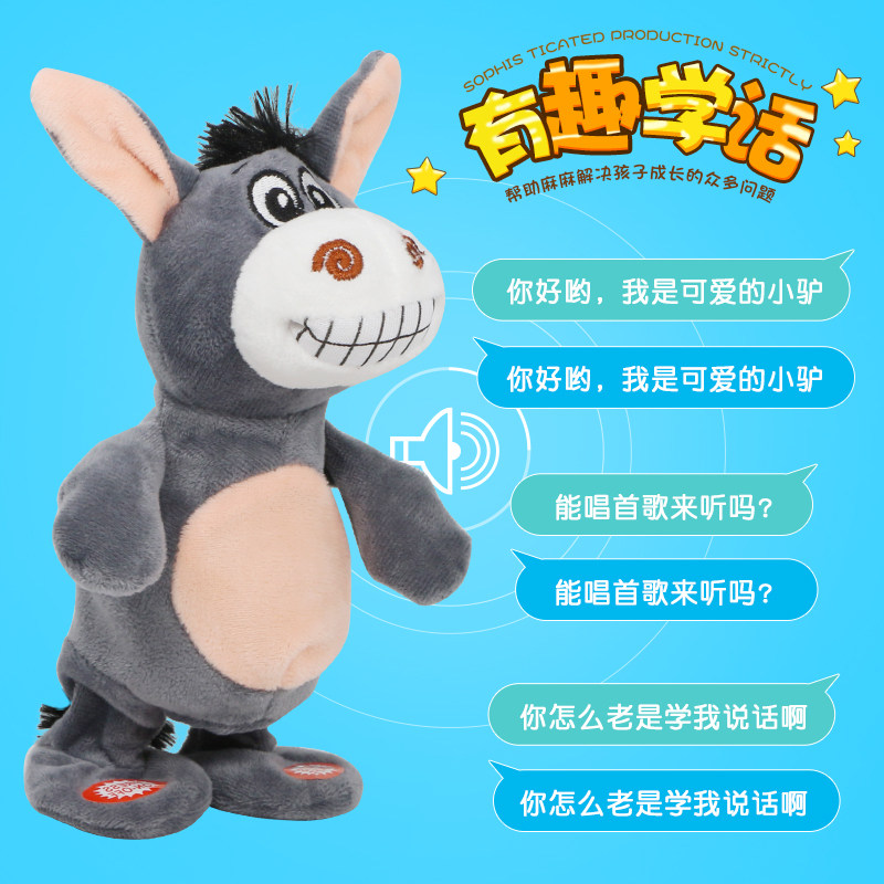 📚 玩具驴学说话摇摆抖音毛驴声控小毛驴新款会走讲话女孩复读跳跳猪