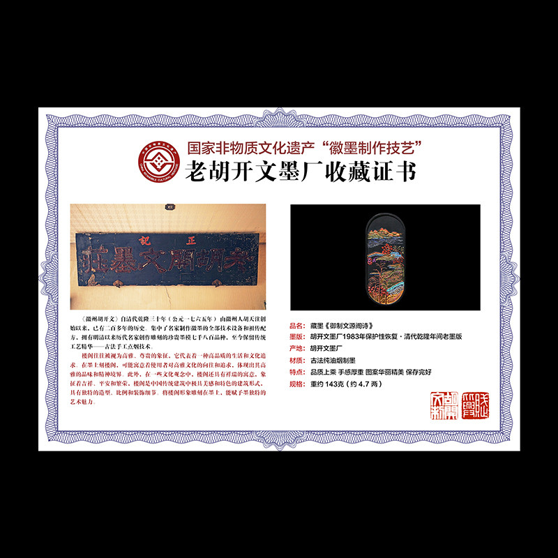 📚 国家非遗 1983年制 清代乾隆老墨版《御制文源阁诗》胡开文收藏墨条 徽墨艺术礼品 精品油烟墨条高档文房四宝