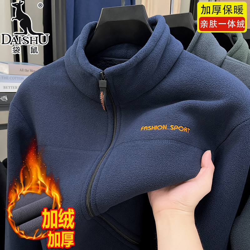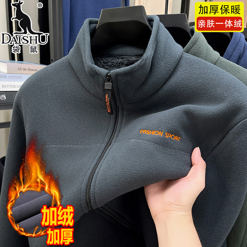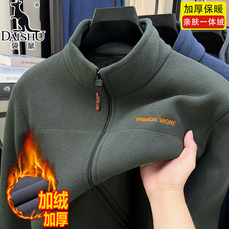 📚 袋鼠摇粒绒外套男秋冬双面加绒加厚立领卫衣防风宽松抓绒衣夹克