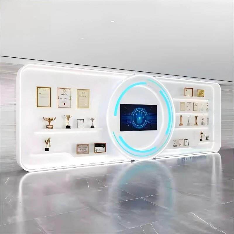 📚 定制展厅展示台异形烤漆展台展柜科技馆陈列柜创意圆形发光台中岛
