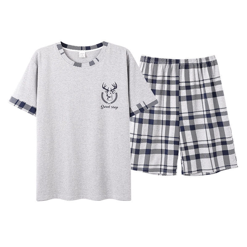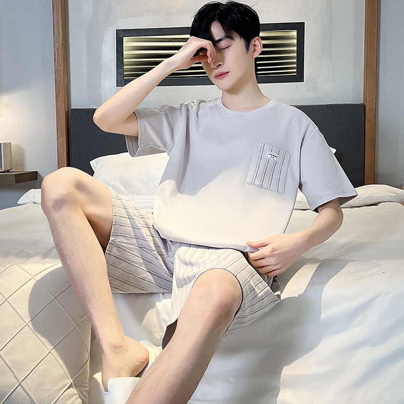 📚 男士睡衣夏季短袖短裤纯棉夏天圆领家居服青少年休闲宽松两件套装