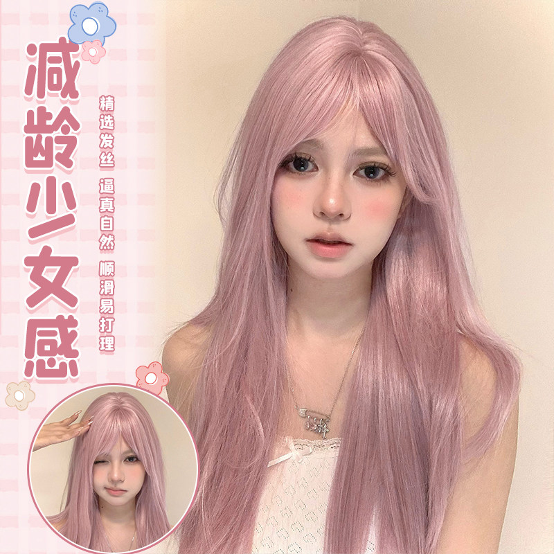 📚 漫真假发奶茶粉金长直发网红时尚女团风精修高层次lolita女全头套
